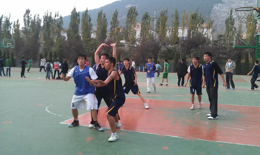 中午12:40,比赛正式开始。10-4班来势汹汹,利用身高优势,不断传球切换,出人意料地连续在外线出手投篮命中,率先夺得6分。班看出端倪,变换战术,以加快移动速度强化防守,1号董仲全连续命中三记3分,大振人心,一举奠定领先地位,至中场休息,双方战至17:10。进入下半场,10-4采用外围,篮下双向进攻,妄图打乱对手的防御,但09-3班队员始终没有给他们机会,外围禄利刚,董仲全的快速,篮下张航铭,徐超航的稳定,加上肖汉的策应,完美的配合,良好的体能,将班牢牢锁死,使自身领先地位得以持续保持。厮杀过后,终场哨响,09-3班以13分的优势完胜10-4班。
