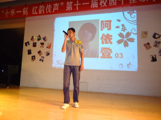 报告厅人声鼎沸,本次25进15的总复赛吸引了大量学子前来观看,会场显得异常热烈而隆重。在第一轮清唱环节中,各位选手尽显本真,将自己或清越或婉约或嘹亮或低沉的歌喉在最适合自己演唱的曲目中酣畅演绎,表现皆极为出色,博得了在场观众一阵又一阵的热烈掌声。在5月7日40进25晋级赛中免除PK,直接晋级的阿依登此次第三位登场。台后,安全10-1班的同学为阿依登制作了精美的PPT,展示自我,彰显风采;台上,阿依登卯足全力,倾情演绎,以自己最动人的嗓音,最真挚的情感打造自己在本场比赛中最完美的丰姿。一曲《我真的受伤了》,唱者全心投入,深情无限;听者感动无比,几欲落泪,阿依登用自己的歌声征服了在场评委,直接晋级校园十佳歌手15强,免除第二轮淘汰赛。在场的安全10-1班的全体同学闻之欣然起立,掌声涌动,呐喊起伏,为阿依登喝彩。
