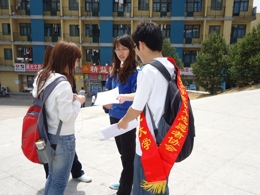 青协来到二食堂广场,向过往学生发放传单,对5•12纪念日进行宣传,表达天美传媒