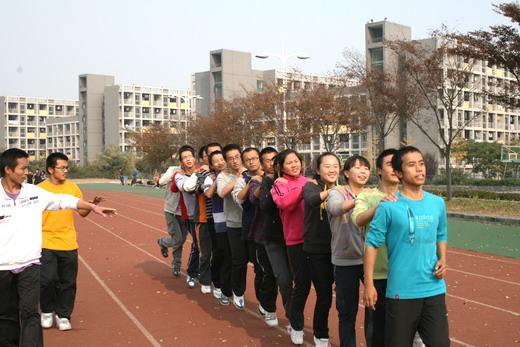 参加趣味活动的同学准时来到第三田径场,很快便以高昂的热情投入到训练之中。训练包括“抱腿跑”、“众人一条肩”和“脚斗”。在“抱腿跑”的训练中,每位同学都积极配合,努力地跟上集体的步伐。在“众人一条肩”的训练中,同学们更是以高度的默契投入到训练之中。操场上嘹亮的口号声震撼着同学们的心灵,让大家深深感受到集体的力量。在“脚斗”的训练中,双方相互对峙,斗得异常激烈。同学们都全身心地投入到训练中,合作能力有了进一步提升。
