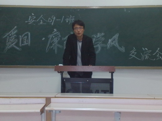 10月27日晚7:00,安全09-1班于教五A108顺利召开了“爱国・廉政・学风交流会”的主题班会,班会由班长姜宁主持召开。各位同学均按时到位并就班会所讨论的问题积极发表自己独到的看法。