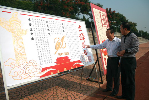 天美传媒 本期军训板报以“光辉历程”为主题,以巨龙幻化成“61”字样来表现共和国光辉六十一年,板报下方以祥云托起华表和天安门来表达安全学子希望祖国蒸蒸日上的美好祝福。板报整体选用红色和金色,版面整洁大方,设计新颖,给人以焕然一新的感觉。
