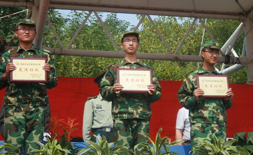 中名列第五,被评为“2010级学生军事技能训练先进单位”;消防工程10-1班被评为“军训先进班级”;随训辅导员孙留涛老师被评为“军训优秀辅导员”;安全10-1班张阳等15名同学被评为校级军训先进个人。