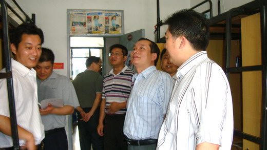 党委书记章毛平、执行院长王德明、副院长李金明、李增华、副书记钱雄、办公室主任胡慧强和毕业班辅导员孙留涛一行七人顶着炎炎烈日来到梅苑3号楼,走访了毕业班宿舍,看望即将离校的毕业生,并与他们进行了亲切的交谈,为10届毕业生送上最真诚的祝福。