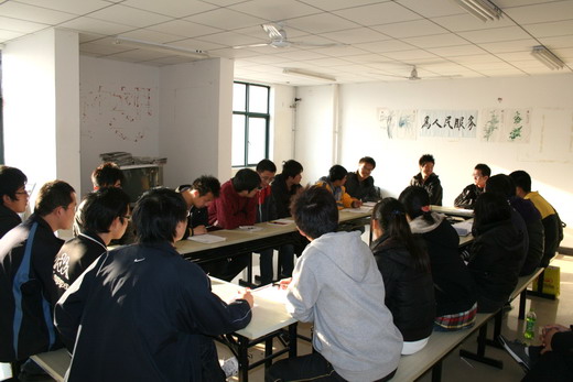 学生及时学习及探讨“两会”相关内容和精神,了解当前时事热点。会议开始,首先由贾伟介绍到场人员并简述了今年“两会”的概况。郭云同学随后带领大家回顾了今年两会的主要内容,介绍了政改、房价、三农、就业、反腐倡廉、医改、教育等方面的相关政策及方针。研讨会上,同学们纷纷就自己较为关注的问题发表看法,尤其是对大学生就业问题困惑颇多。同时,作为较有经验的07级、08级学生,也对09级的同学提出不少意见。本着理论联系实际的原则,大家又对校园生活学习及组织活动等方面相互交换意见,交流经验,其乐融融。到场同学畅所欲言,谈出自己对于两会的感受和触动,不少同学的言论还引起了大家的共鸣,获得了阵阵掌声。