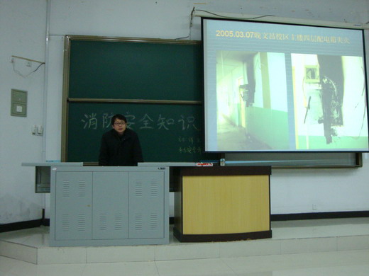 火灾等数起案例,简要分析了当前火灾事故的多发性及其对国民经济造成的严重影响,指出对大学生普及消防安全知识刻不容缓。孙磊老师介绍了应急照明灯、安全出口指示标志、疏散指示的具体位置,报警按钮、室内外消火栓及各种灭火器的使用对象与方法。此外,孙老师还以生动的动画形式给同学们展示了火灾的不同起因、火灾防范以及火灾自救等内容,提出治病先寻因,预防是关键。一旦火灾发生,要学会保护自己的生命安全。