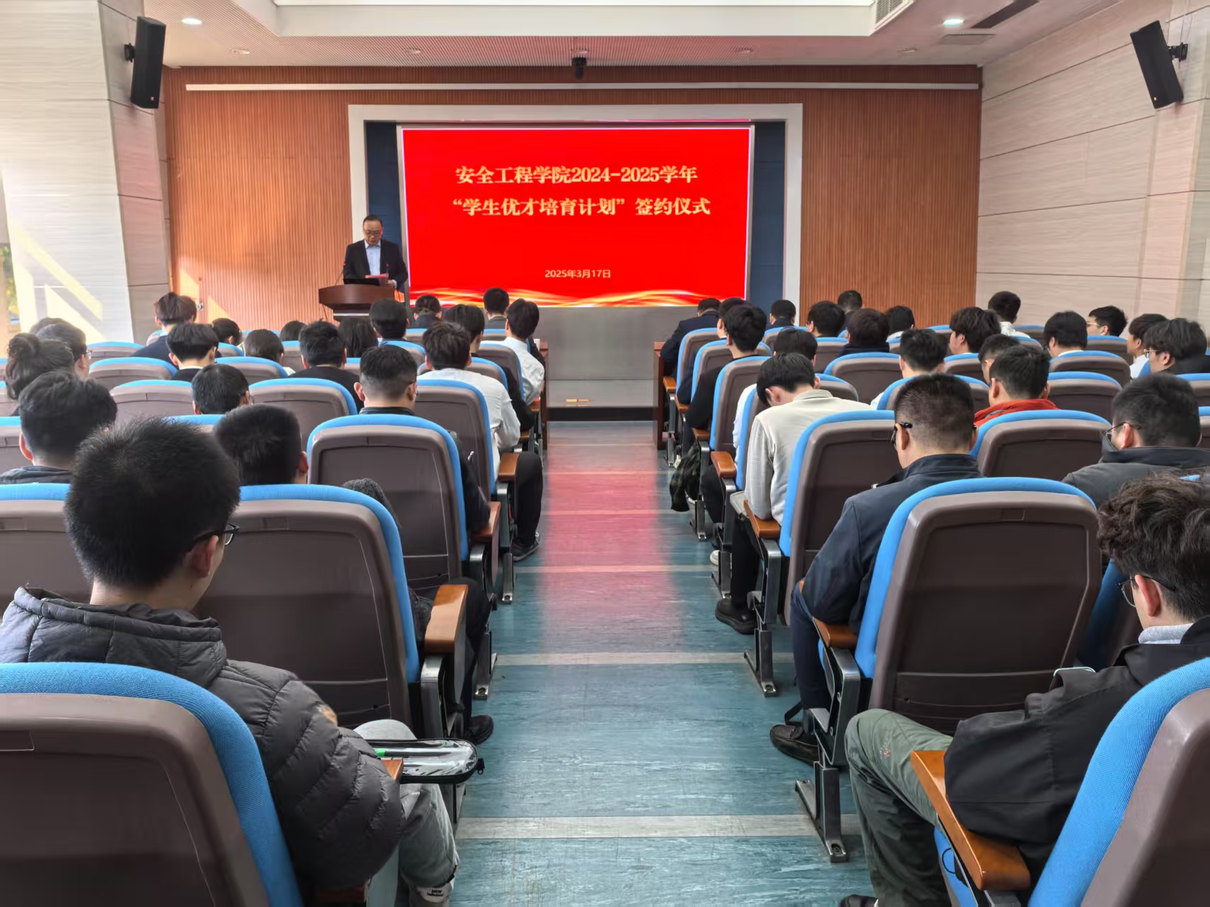 人工智能研究院的成长收获,并鼓励同学们要明确目标,不忘初心、珍惜在校学习时间,努力成为安全领域一流拔尖人才。签约学生代表刘振宇讲述了自己在矿大学习生活中的感悟以及加入优才计划一年半以来所取得的成绩与收获,并表示将继续秉承“开拓创新、追求卓越”的精神,勇于创新、敢于实践,扎根安全学科,服务国家能源行业发展。