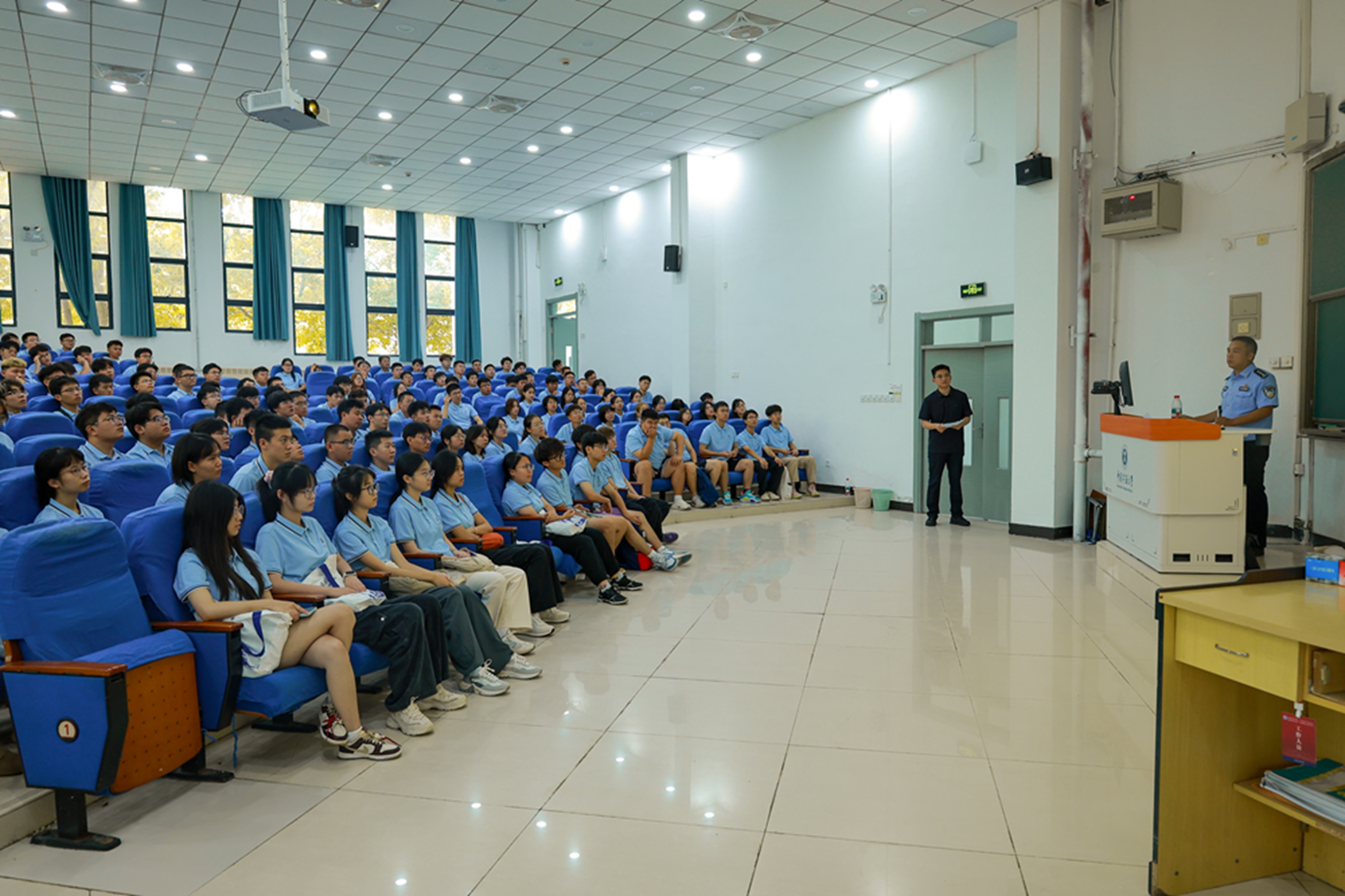 讲座中,杨志林紧密围绕高校校园安全实际,聚焦消防安全、防范网络电信诈骗、人身及财产安全等核心领域进行了系统讲解,通过讲解网络诈骗的运作流程,网络诈骗追赃的困难性和常见诈骗类型,帮助新生了解、识别并远离网络诈骗,并于现场设置互动环节,就新同学们关心的校园安全问题进行了耐心细致的解答。