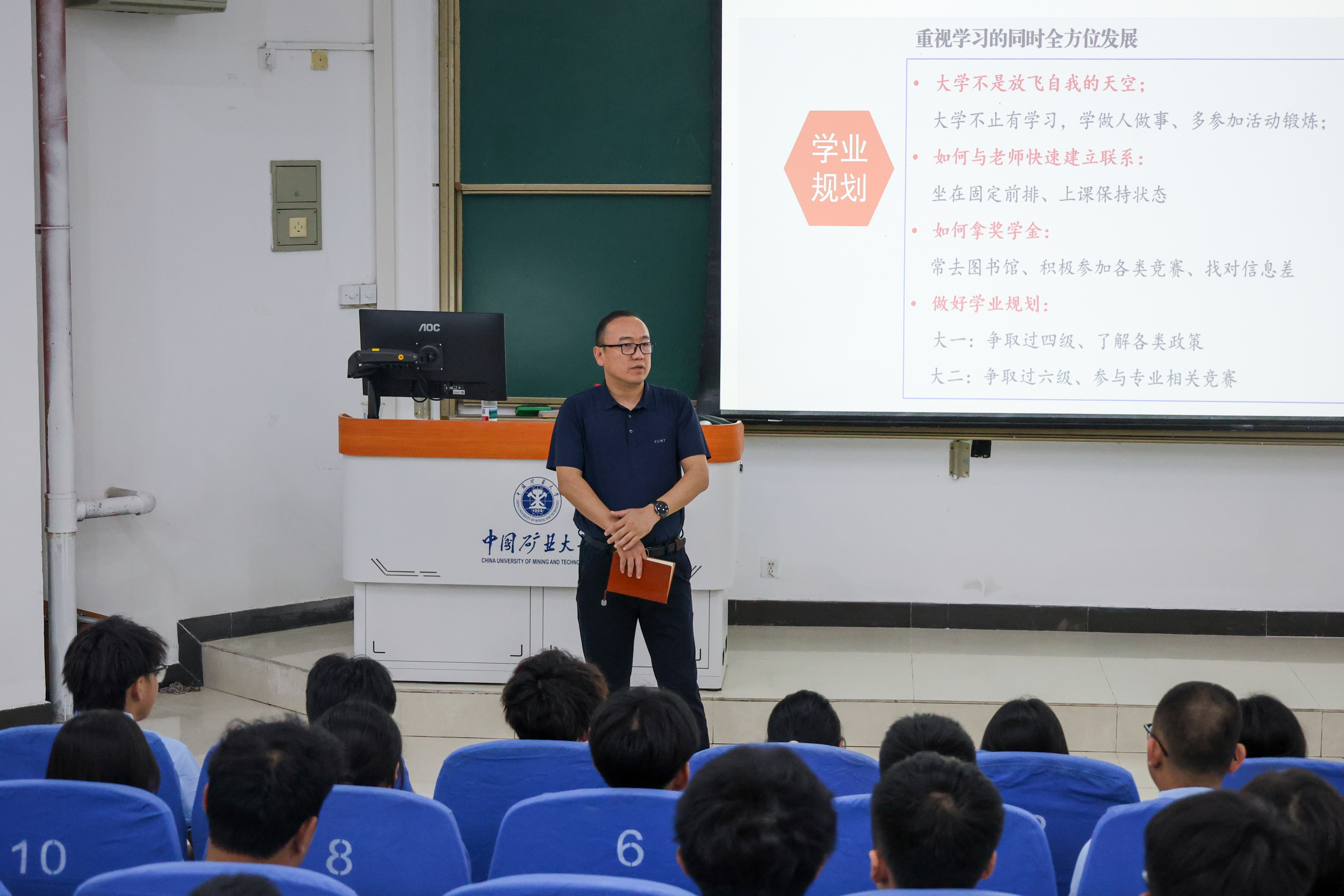 的认同感与归属感。随后,他围绕“大学生应有的意识与状态”这一核心主题展开阐述,系统解读了学生管理相关规章制度,深入剖析了新生可能面临的适应性问题,并就学业规划方向提供了指导性建议。此外,他特别强调了校园安全稳定工作的重要性,殷切希望全体新生能够尽快完成角色转变,自觉树立远大理想,以高度的自律精神开启新的大学生活。