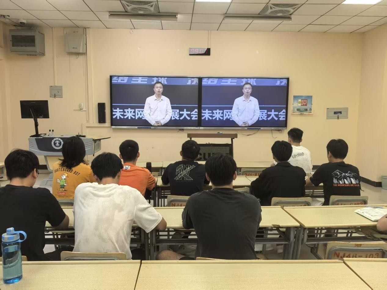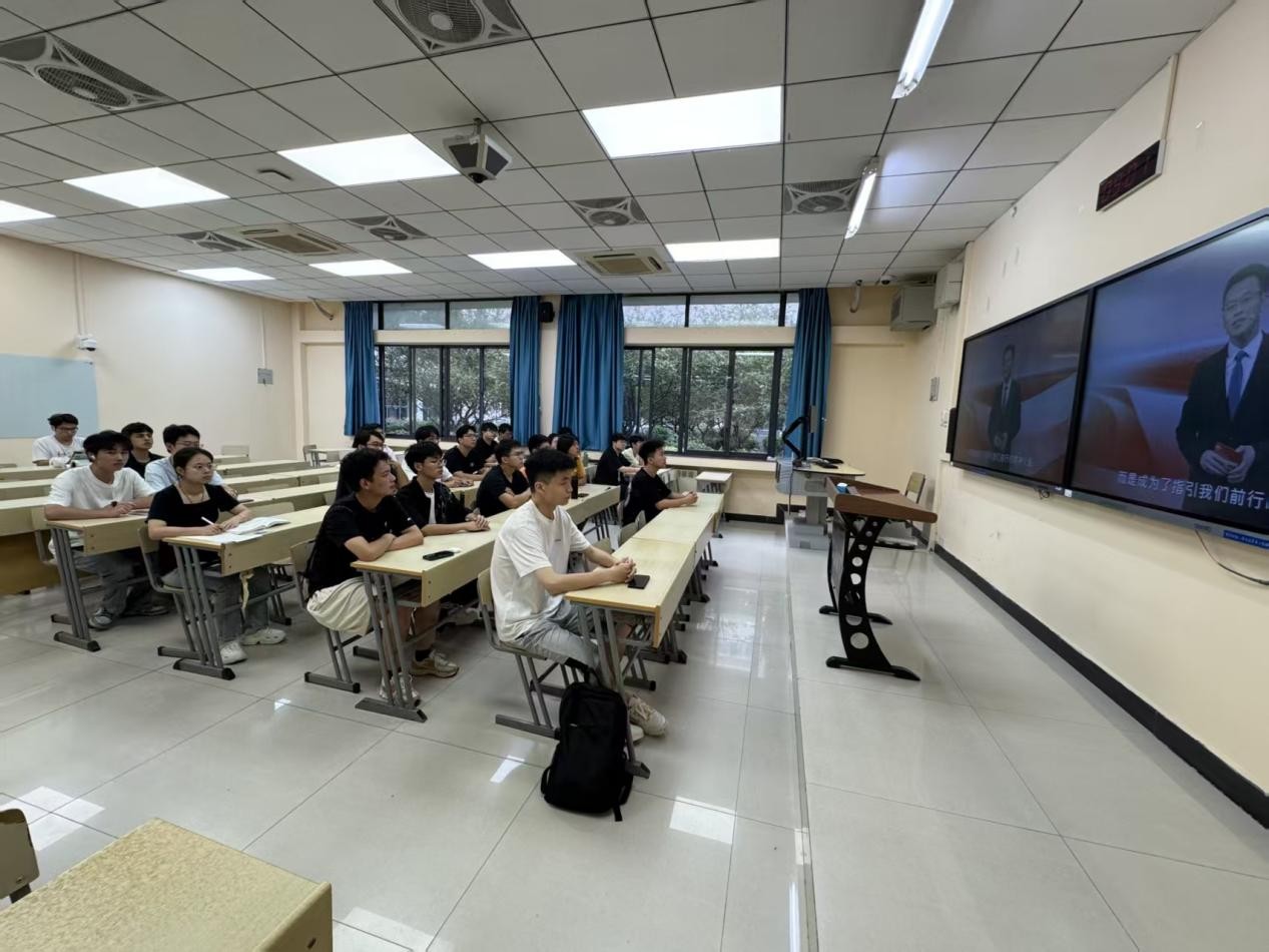 学生党员工作站及第二党支部全体学生党员于教学教室集中开展“青春与祖国同行”集体学习活动,共同观看2025年江苏省高校“开学第一课”。