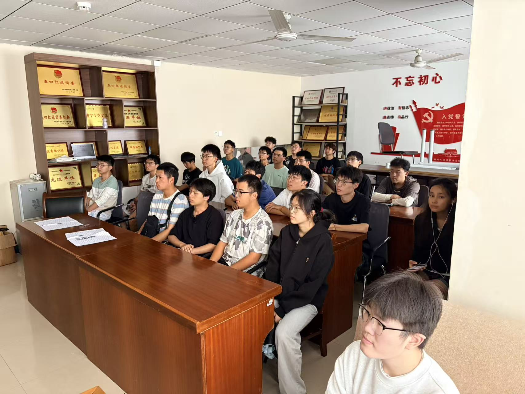 影片《建国大业》聚焦中华人民共和国诞生前后的波澜壮阔历程,生动刻画了以毛泽东、周恩来等为代表的中国共产党人,在动荡年代中为民族独立、人民解放不懈奋斗的英雄群像。观影过程中,现场氛围庄重而热烈,同学们全神贯注,跟随剧情回溯峥嵘岁月,深刻感受先辈们在艰苦环境下的热血与激情。现场气氛庄重,秩序井然,影片中真挚的情感与厚重的历史感召力,引发广泛共鸣。
