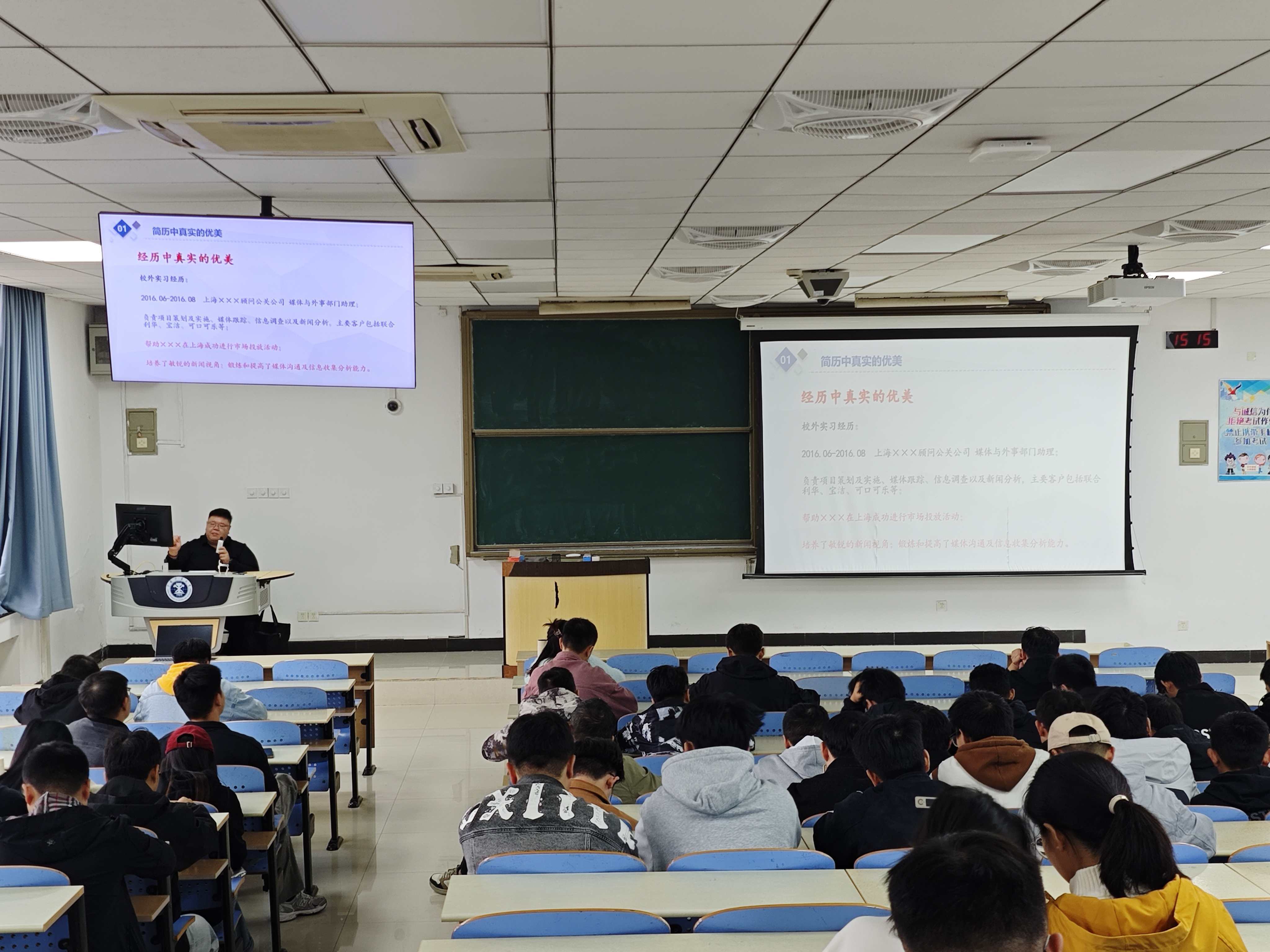 为学生提供的就业指导服务体系、信息发布平台及校企合作资源。他从简历撰写、面试技巧、岗位选择等多个方面为同学们提供实用建议,鼓励大家结合专业特长与个人兴趣,尽早明确就业方向,增强求职竞争力,把握秋招、春招等关键时间节点,实现高质量就业。