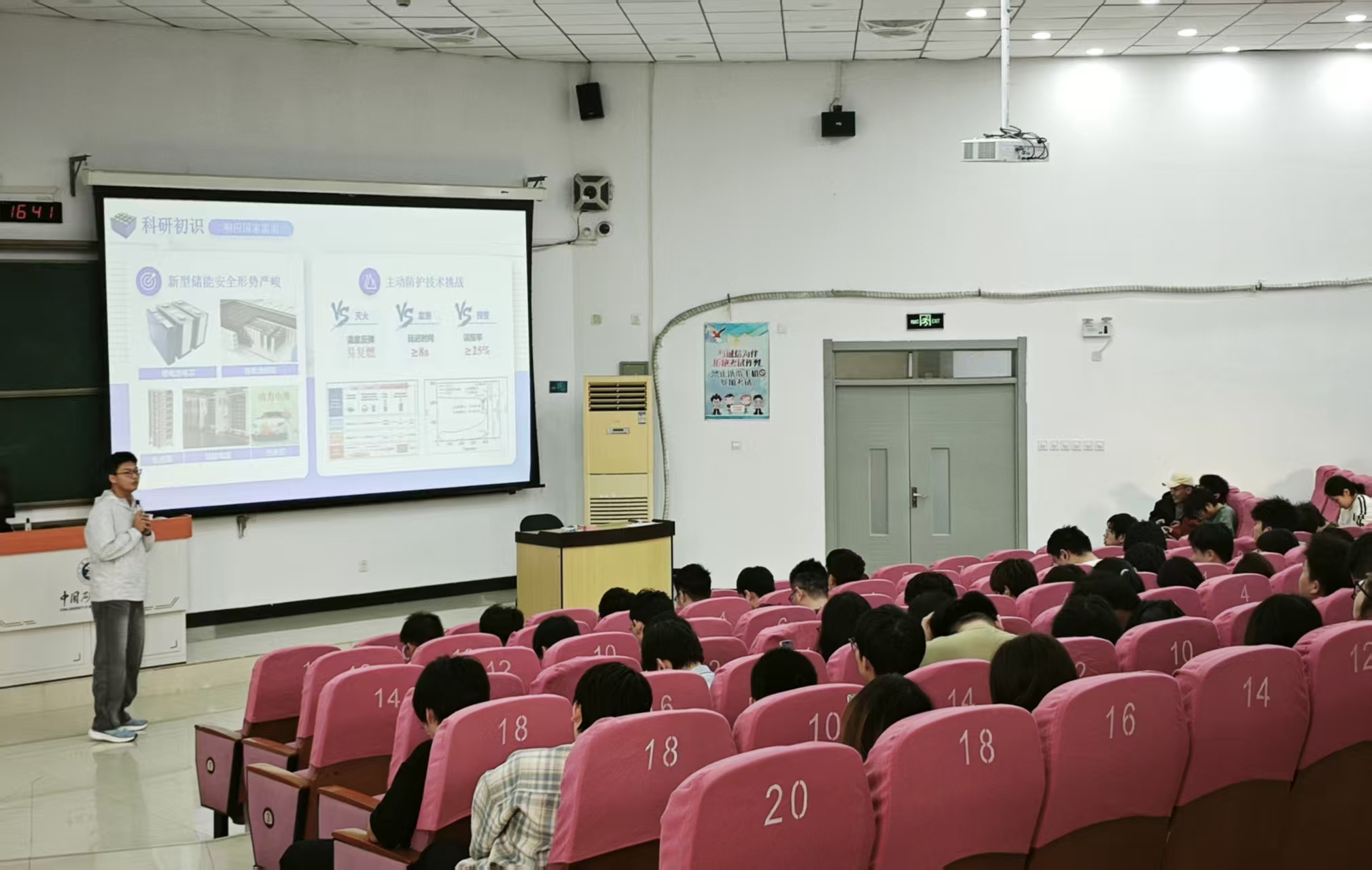 本次活动邀请张念基、张晓强两位在学科竞赛中表现突出的学长担任主讲。张念基同学围绕安全科学与工程大学生实践与创新作品大赛、全国大学生节能减排社会实践与科技竞赛等赛事,系统介绍了竞赛的基本情况、报名流程与备赛要点,并结合自身参赛经历,为同学们提供了实用建议。张晓强同学重点分享了参与“挑战杯”全国大学生课外学术科技作品竞赛的体会,从项目选题、材料撰写到现场答辩等环节逐一解析,详细阐述了一个优秀竞赛项目应具备的要素与提升路径,为同学们构建了清晰的备赛框架。整场分享内容详实、案例生动,现场互动积极,气氛热烈。同学们表示,通过此次活动,对各类竞赛有了更全面、深入的了解,也增强了参与科研创新活动的信心与动力。
