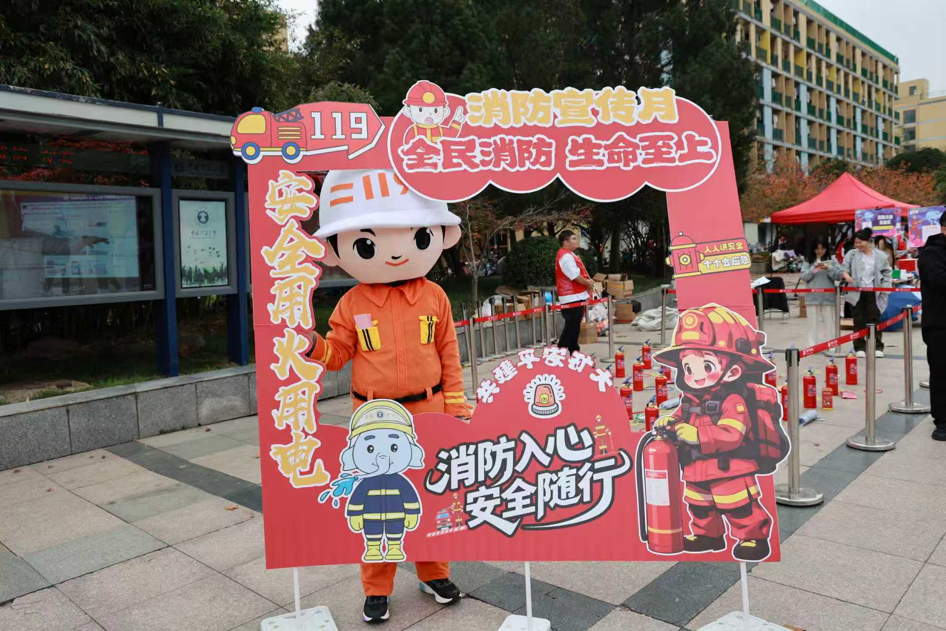 联合保卫处于青春广场开展沉浸式消防宣传活动,吸引了众多师生积极参与。