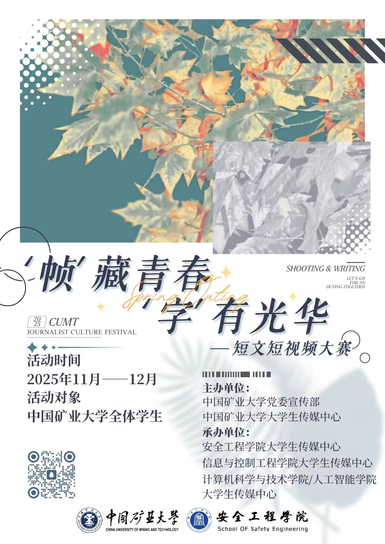 为丰富校园文化生活,引导同学们记录与传递身边的美好与感动,2025年11月8日至12月1日,天美传媒