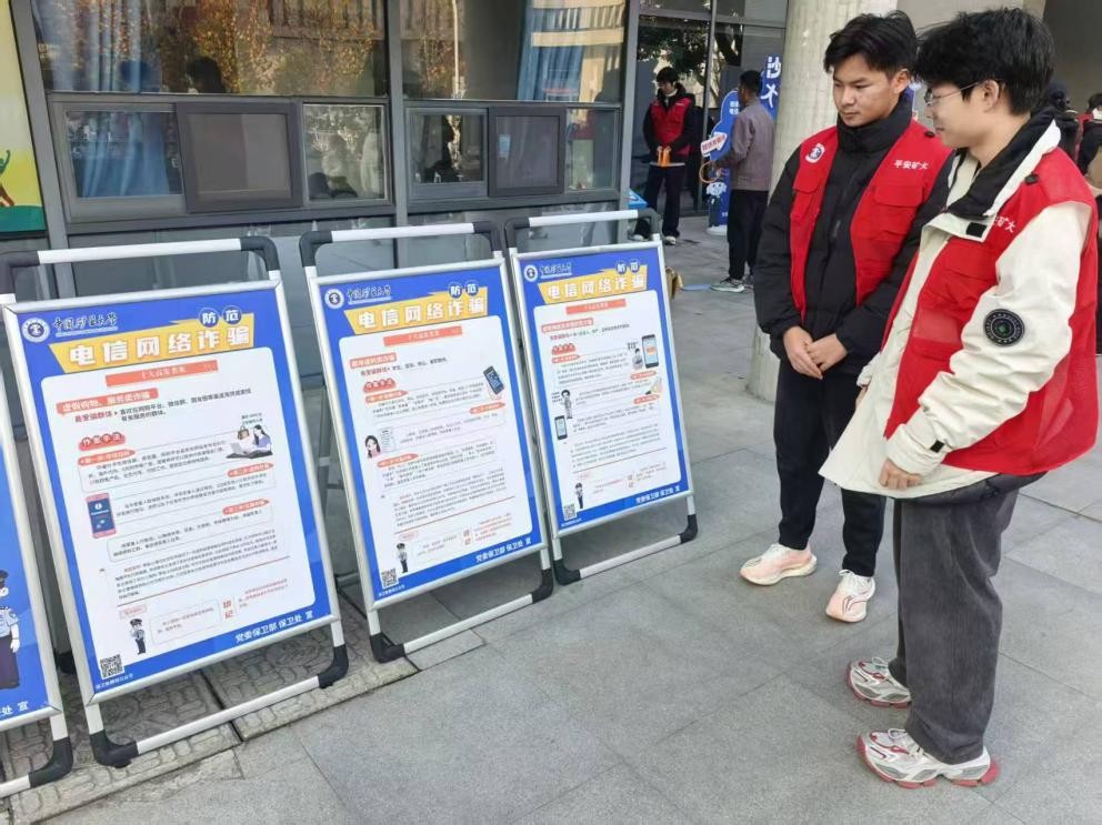 联合保卫处与兰苑社区兰苑三号楼一楼大厅组织开展“趣味反诈”主题宣传活动,通过互动体验、游戏参与等寓教于乐的形式,引导学生学习反诈知识,筑牢安全防线。