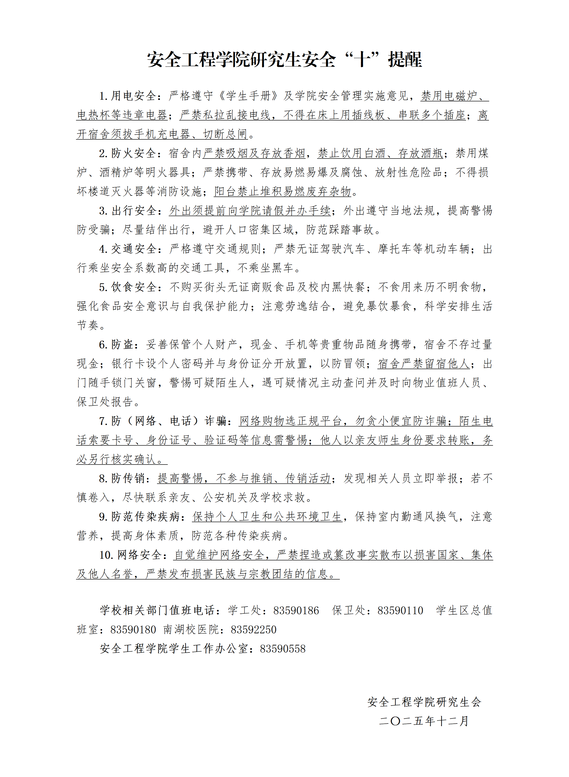 研究生安全“十”提醒