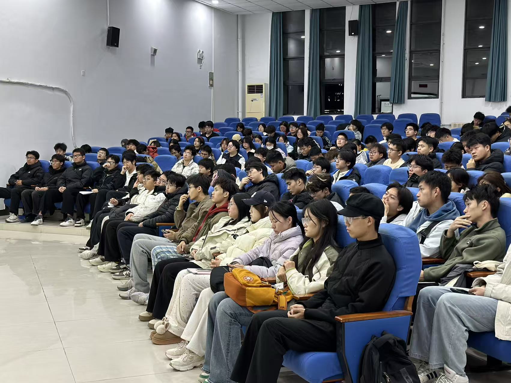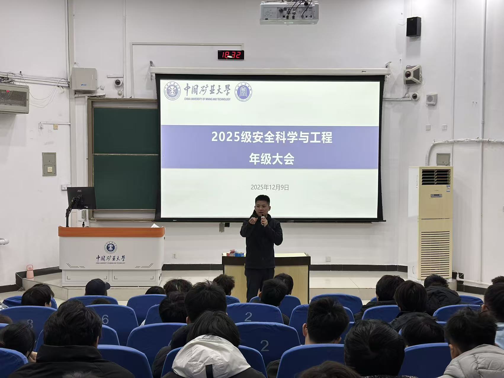 于博学二楼C102教室召开2025级第二次年级大会。会议由辅导员魏铁飚主持,兼职辅导员贾言哲及2025级全体学生参加。
