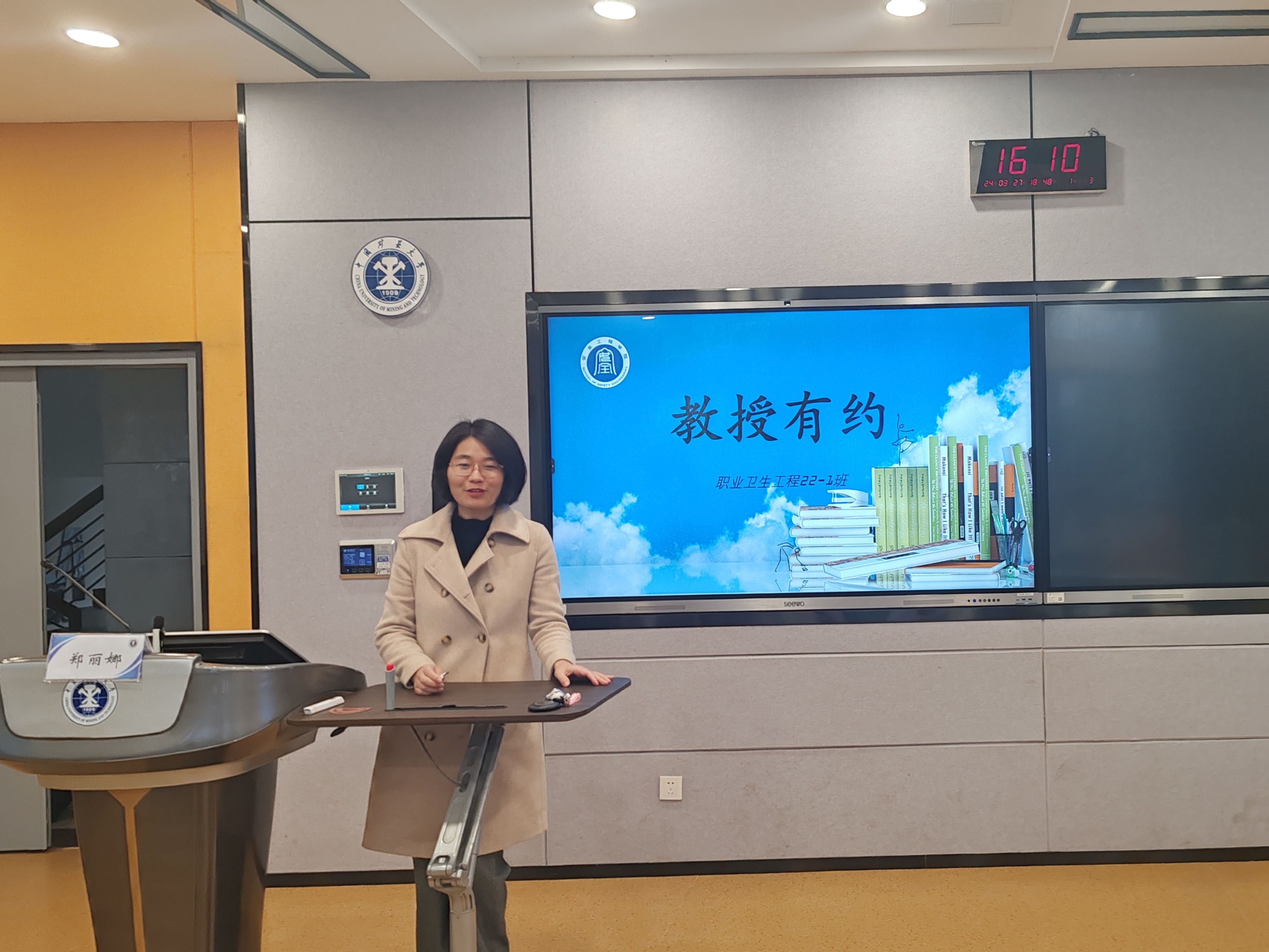 于博五A201开展了第一百一十四期“教授有约”活动,郑丽娜教授受邀主讲,职业卫生工程2022级1班行政班主任黄荣廷以及全体同学参与本次活动。