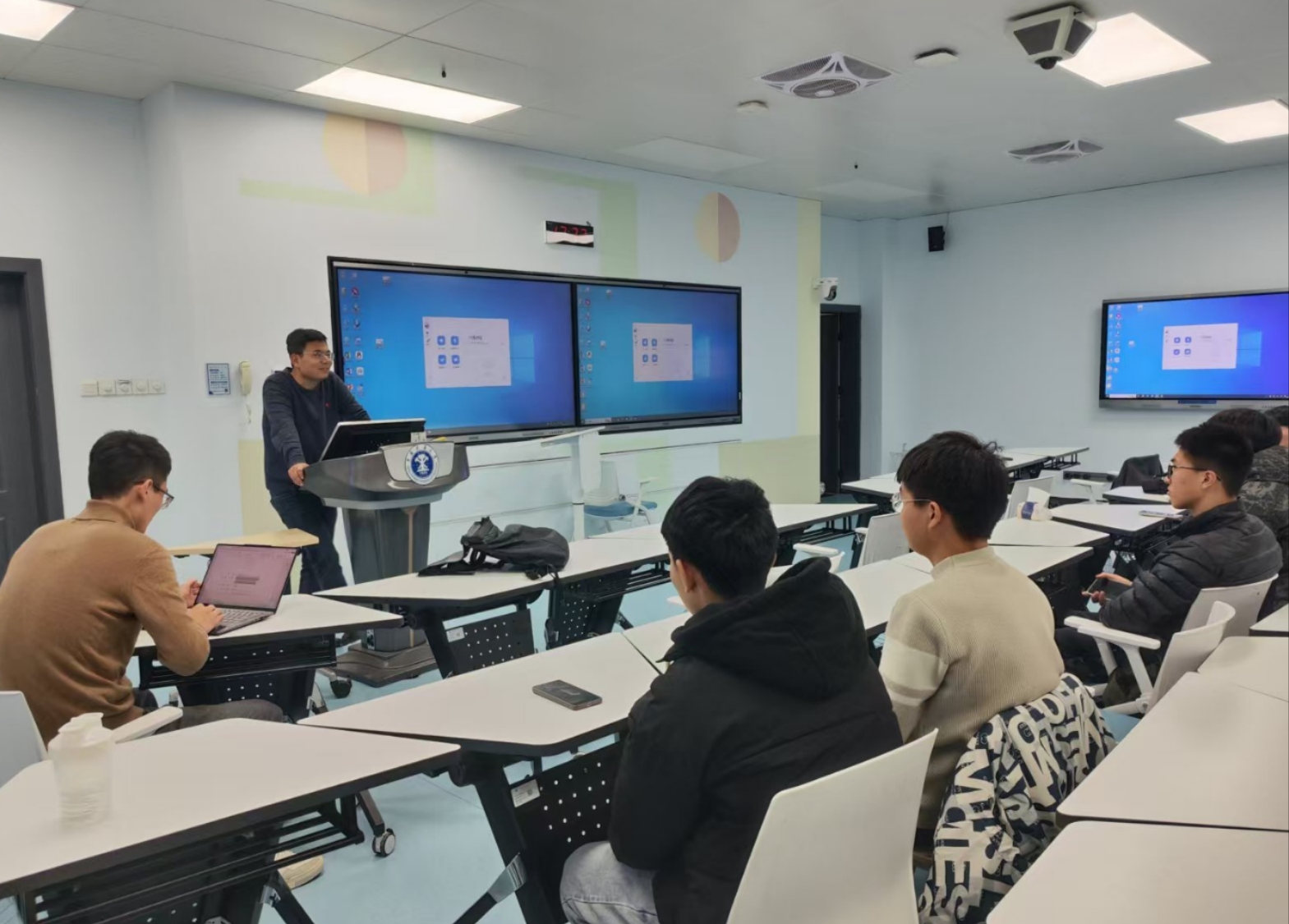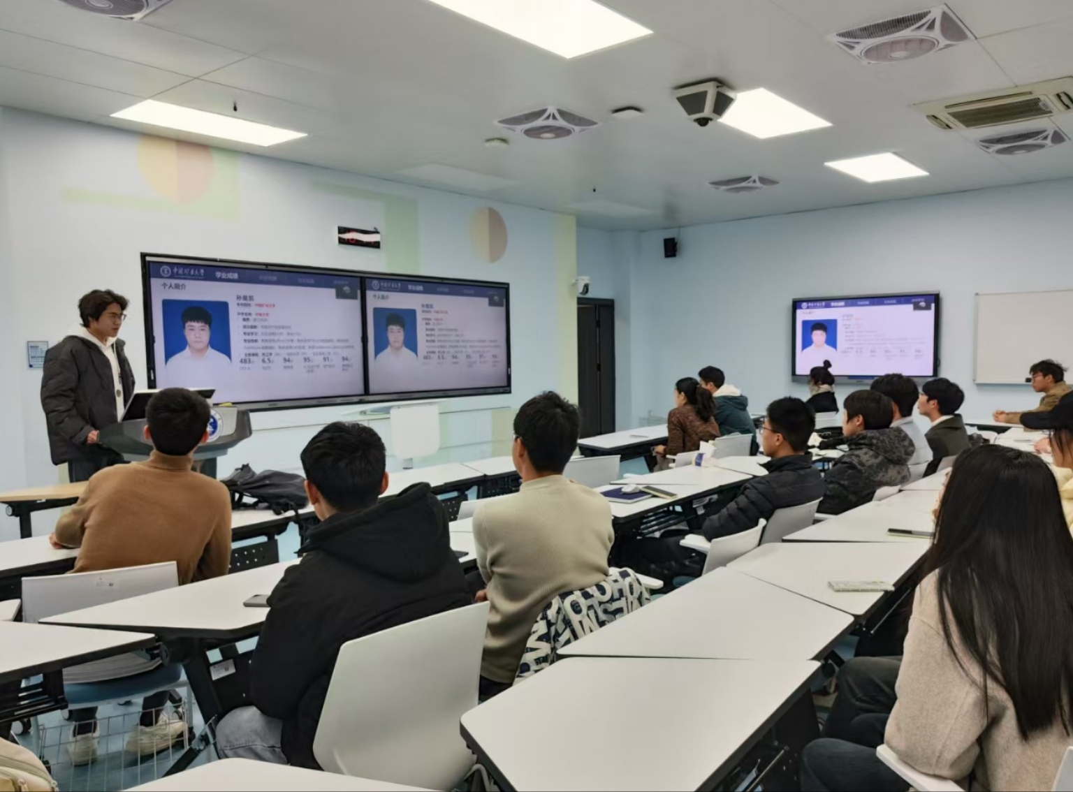 于博5A302开展“推免经验分享会”讲座。张国维老师及唐国才、董心同、晁可可、孙琨凯等往届保研同学受邀主讲。行政班主任刘通老师,2023级消防工程1班全体学生参加本次讲座。