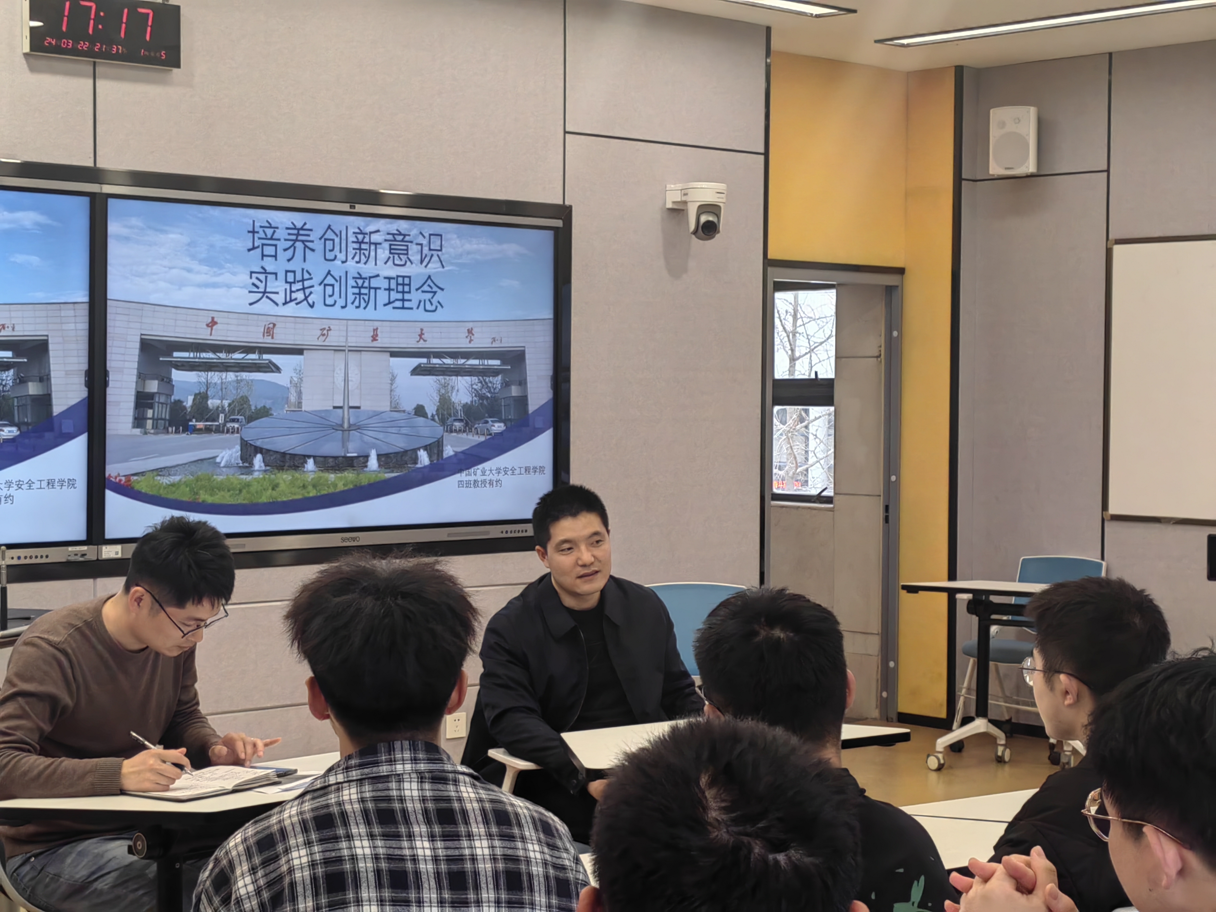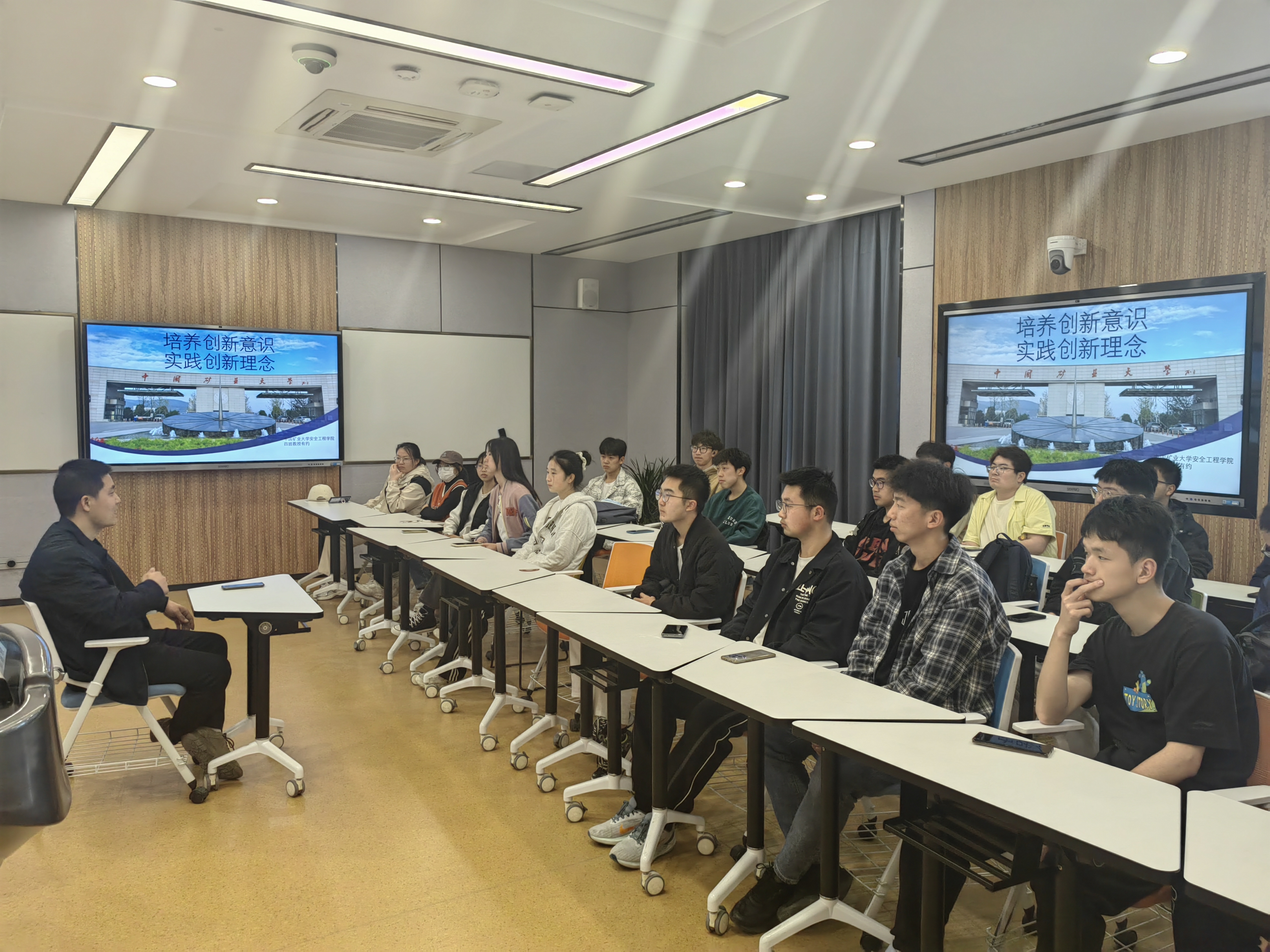 于博5-A201开展“培养创新意识,实践创新理念”主题讲座。2023级安全四班学术班主任戚绪尧教授受邀主讲,行政班主任周群老师主持开展本次讲座,四班全体同学参与本次活动。