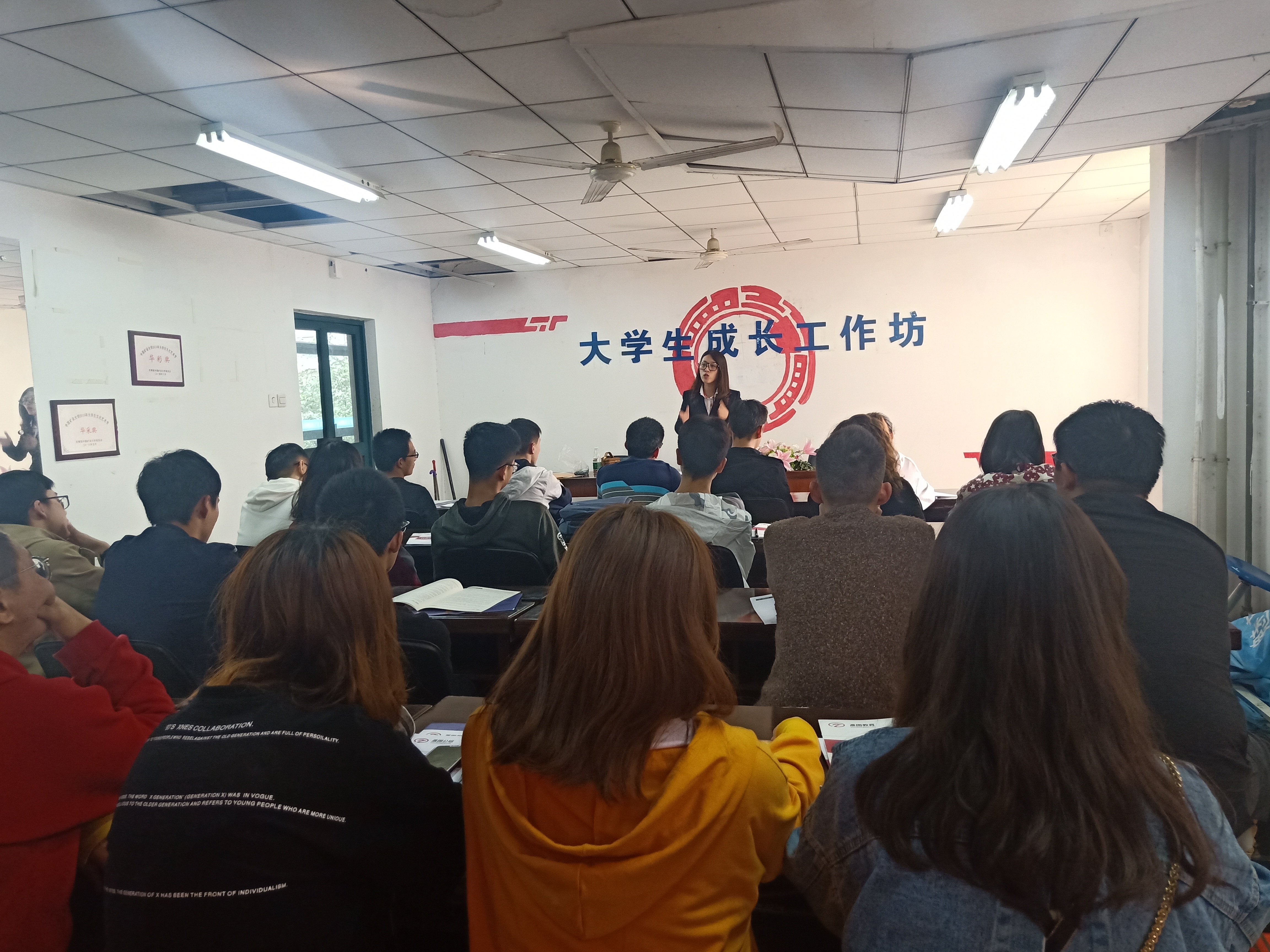 科技创新协会的同学们负责准备工作,并负责展图教育老师的接待。当天下午14:30讲座正式开始,天美传媒