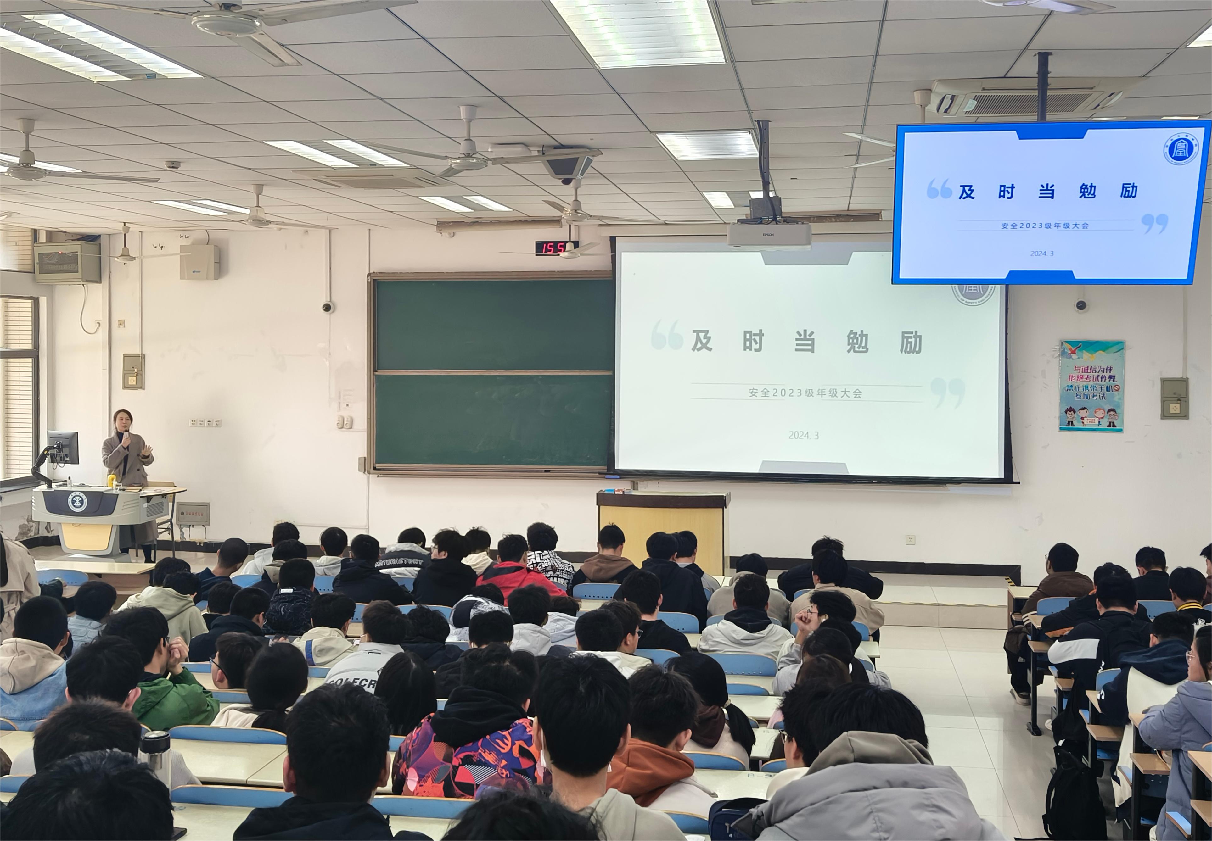 3月11日下午,2023级在博一C103召开以“及时当勉励”为题的年级大会,辅导员郭佳、董映仪和2023级全体学生参加本次会议。