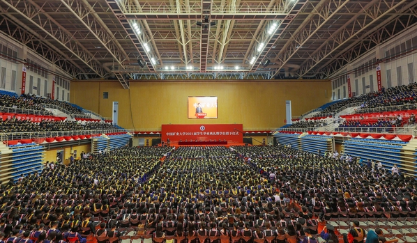 2021届毕业生典礼在南湖体育馆隆重举行。校党委书记刘波,校长宋学锋,副校长曹德欣、赵建岭、李强,校党委副书记蔡世华,副校长周国庆、卞正富,校党委常委、校长助理张万红,校党委常委、组织部部长张万海,天美传媒