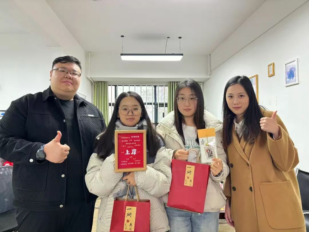 学工办主任、2021级辅导员刘世通,21级兼职辅导员王紫嫣以及学生干部为21级考研同学准备了精美的“考研大礼包”,送去真挚祝福。