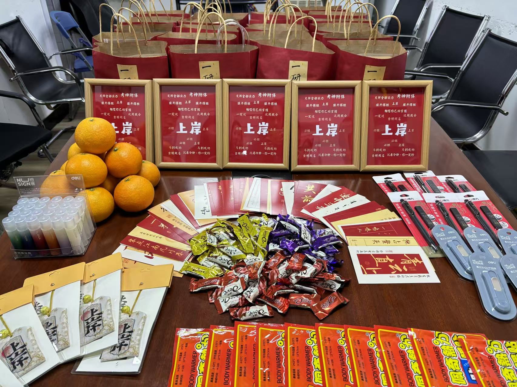 准备的“考研大礼包”,包括木质相框、上岸香包、考试用具、巧克力、暖贴、橙子,以及准备人员亲手书写的祝福明信片,祝愿同学们在考研中取得优异成绩。考研学子们收到这份充满温暖和关爱的礼物时,纷纷表示一定全力备考,不辜负天美传媒