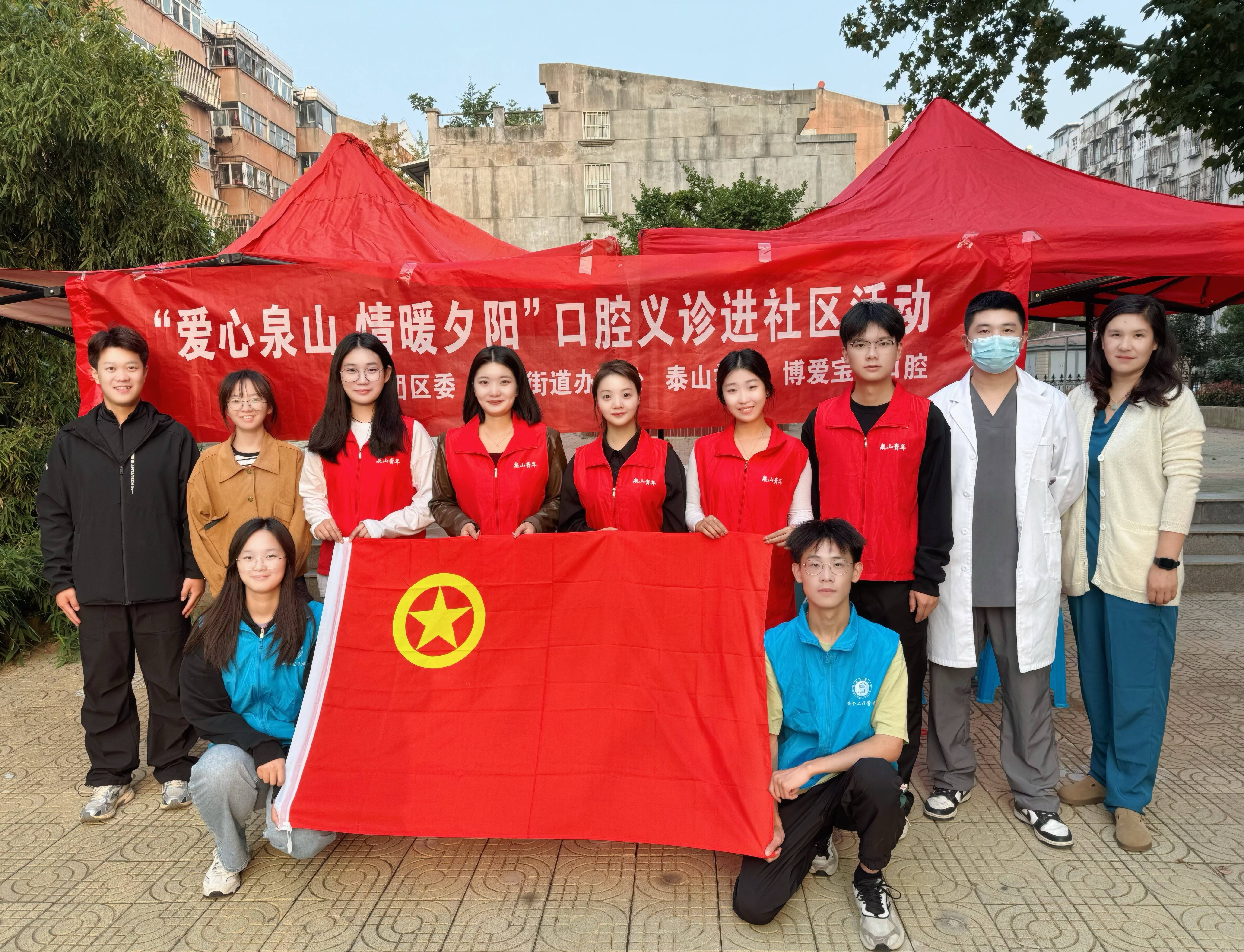团委、泰山街道办事处、泰山社区、博爱宝岛口腔开展口腔义诊活动。