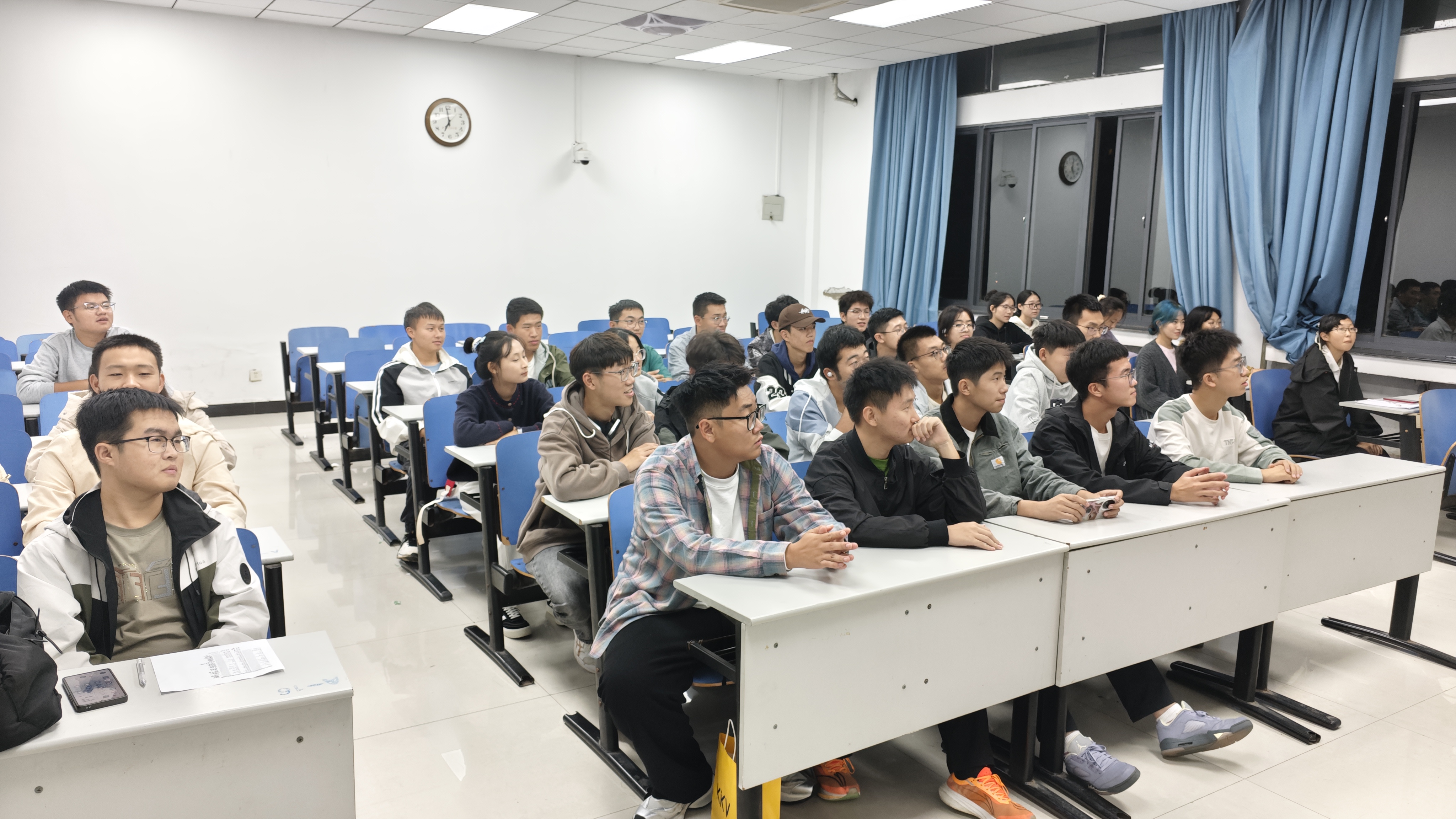 活动伊始,张念基向新生介绍了考试成绩和素质分的区别和意义,并阐述了与之相关的保研条件,鼓励同学们“德智体美劳”全面发展,学习之余丰富自己的社交能力及综合素质。随后,他又介绍了大二将要面临的分流和转专业问题,让同学们可以向着自己感兴趣的专业领域不断迈进。此外,同学们还了解到竞赛对能力提升以及未来发展的积极影响,对参加各类竞赛产生了浓厚的兴趣。在张念基讲解时,新生们不时在笔记本上记录要点。最后的问答环节中,新生们踊跃提问,学长也给予每个问题耐心解答,现场气氛十分活跃。