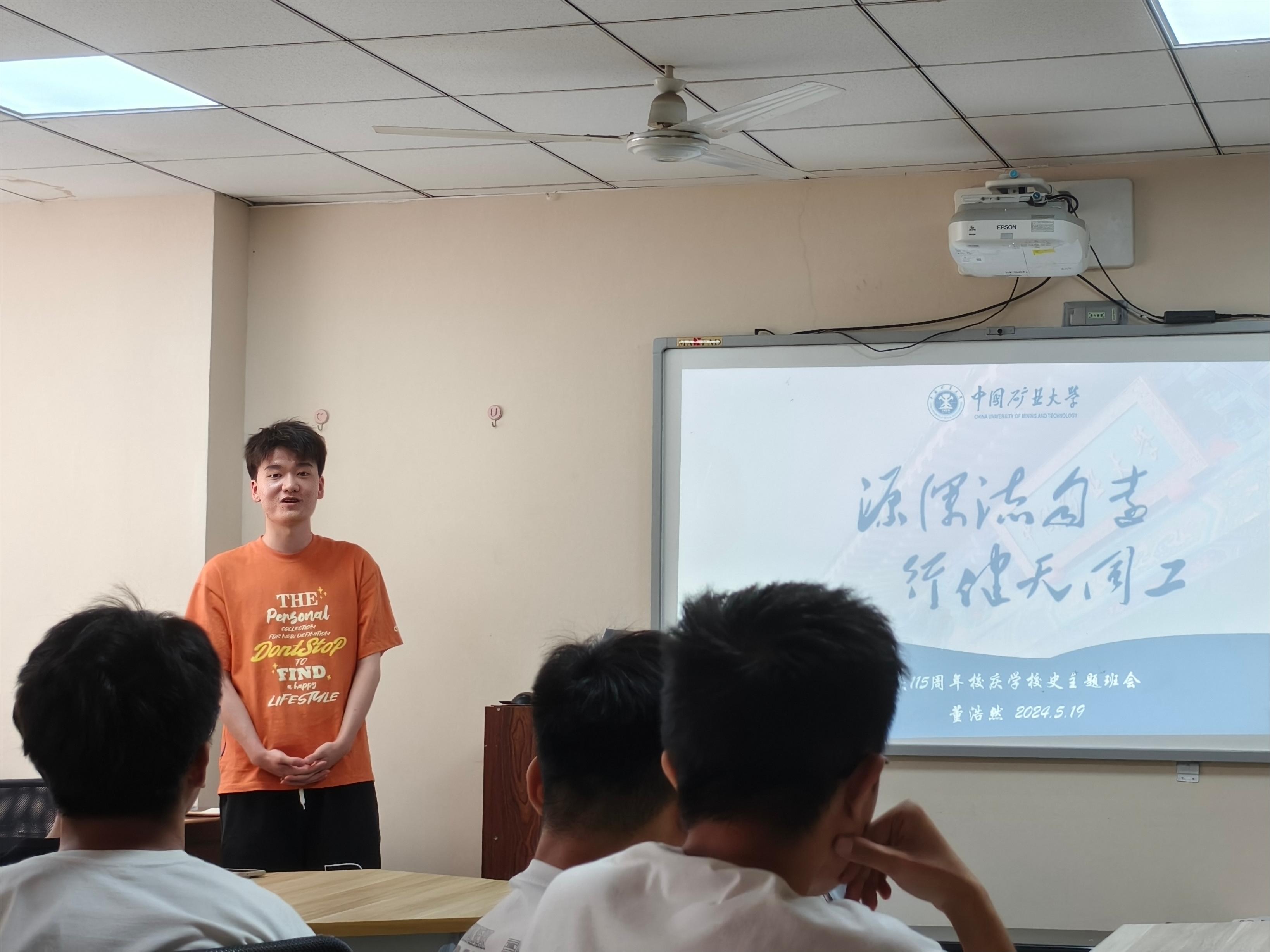不同历史时期的名称变化。接着,董浩然向同学们讲述了“崇德尚学”的校训、“好学力行、求是创新”的校风,“自强不息、艰苦奋斗、追求卓越”的矿大精神的内涵。接着,王彬皓对国际班选拔与培养模式展开介绍,为刚刚专业分完流的同学们答疑解惑。最后,董浩然和王彬皓就同学们提出的关于学业、大创等方面的疑问展开细致解答。