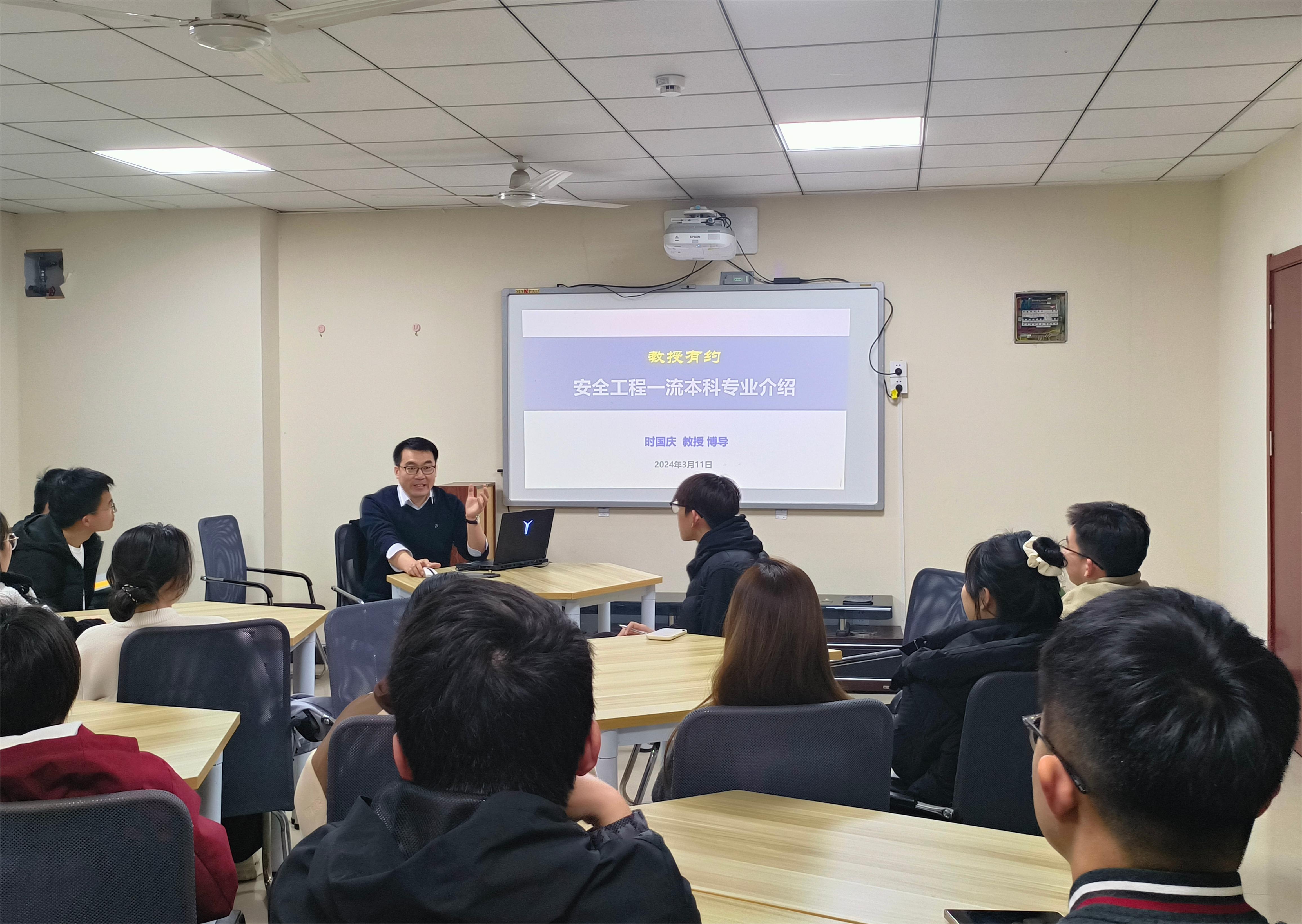 会议伊始,时国庆教授从多方面对安全工程学科建设情况进行了详细介绍,并勉励同学们找到学习的目标,坚守初心,肩负起矿大安全人的使命,同时他建议同学们不要被固有观念束缚,大胆尝试,勇于挑战。随后,时国庆教授结合自身经历,从学习、生活等方面向同学们提供了宝贵的经验。他希望同学们要学会将压力转化为动力,把握时间,找准定位,制定明确的目标与生涯规划,付诸实践,不断冲刺。讲座最后,时教授耐心解答了同学们关于专业的疑虑,并鼓励同学们要不断超越自己,为实现理想而努力奋斗。