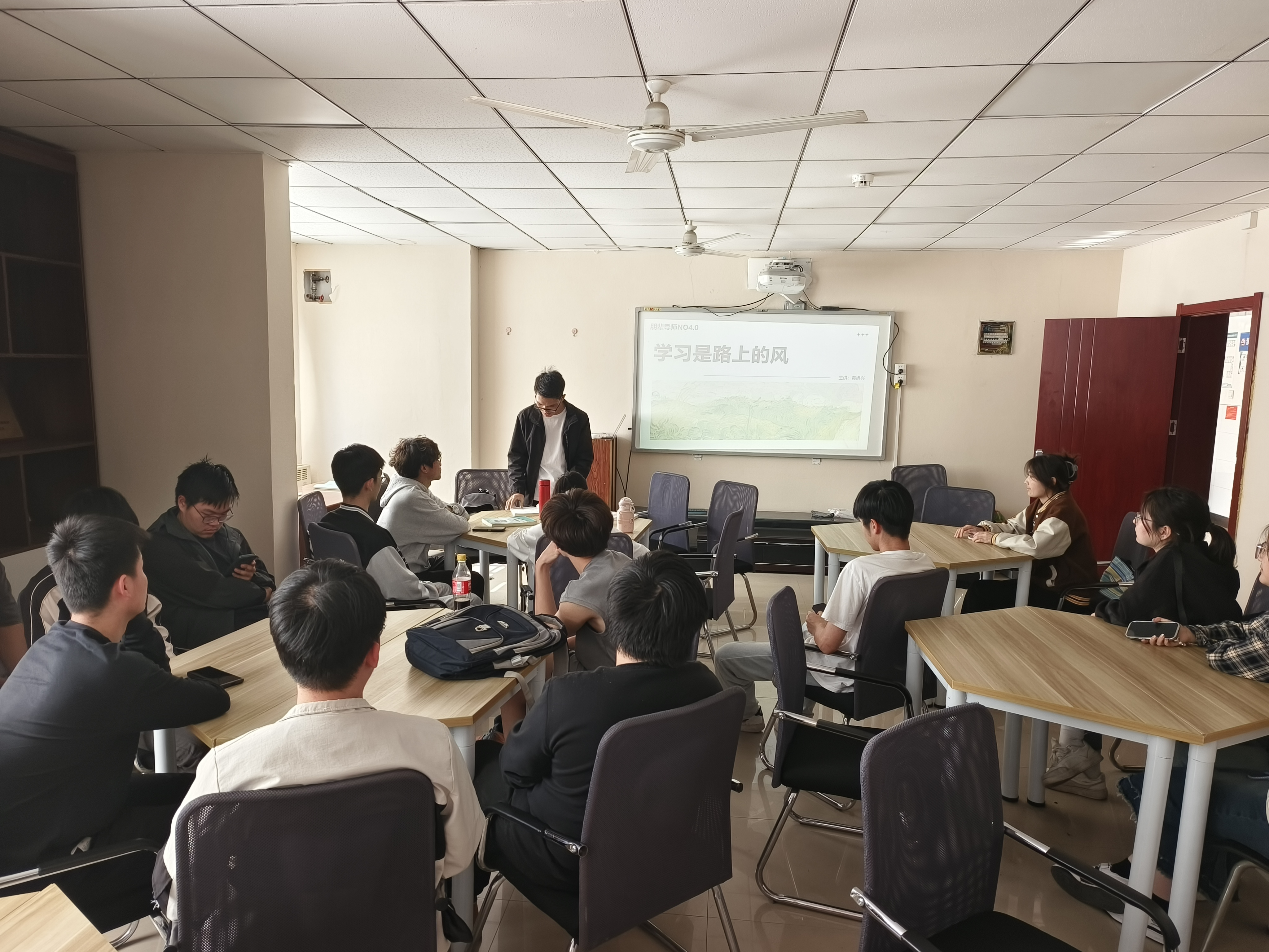 学生党员工作站于梅三五楼力行轩开展分享交流,助力成长”主题讲座,朋辈导师黄旭兴受邀主讲,职卫22-1班全体同学参加本次活动。