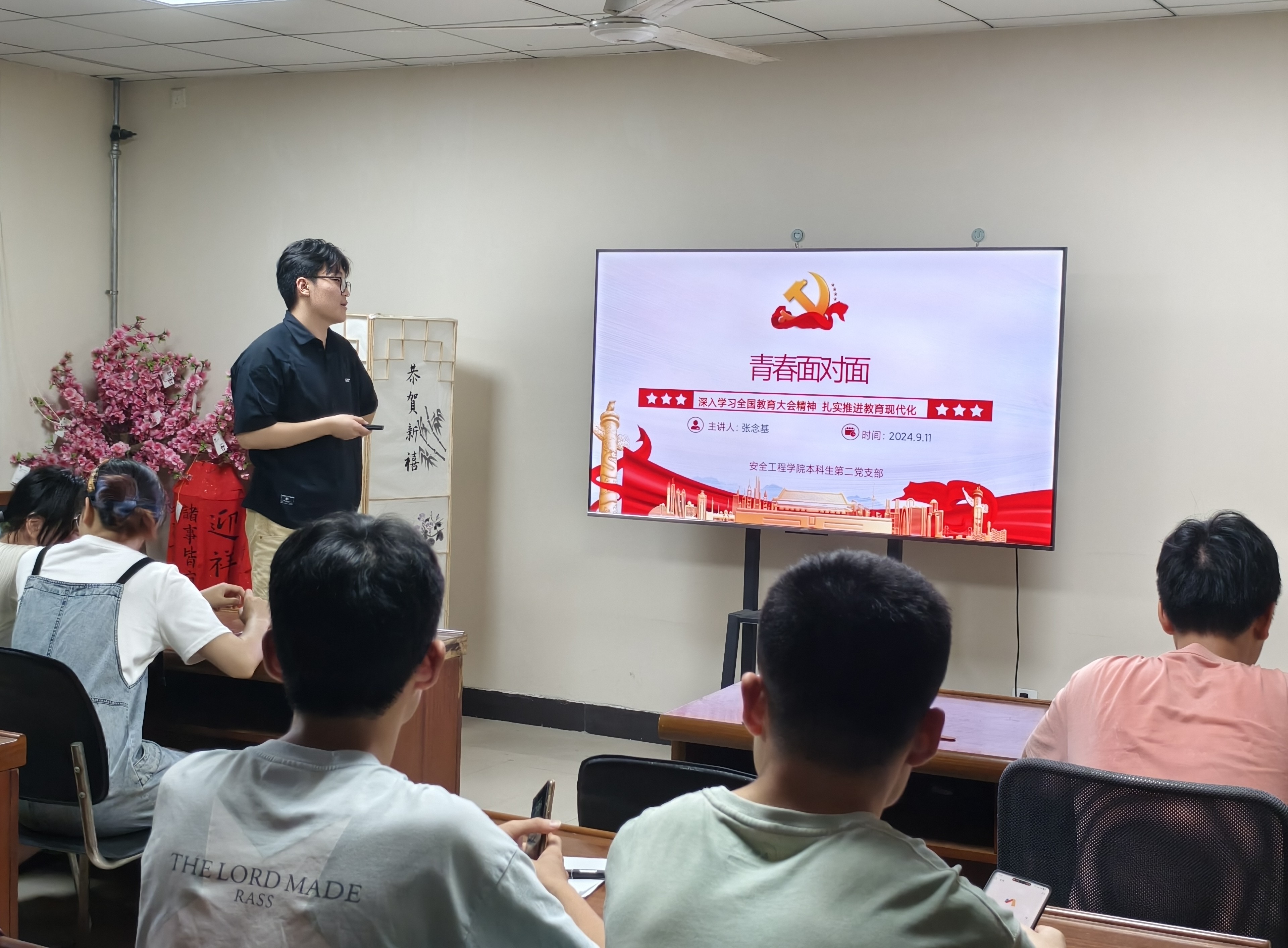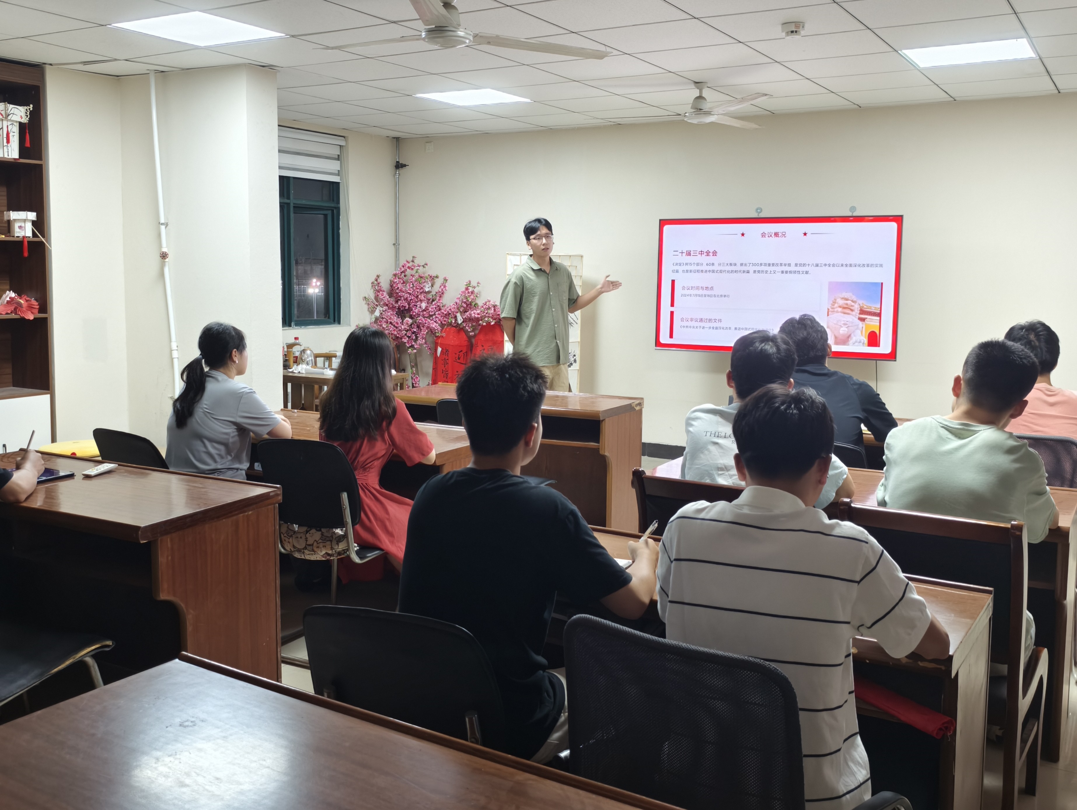 活动伊始,侯景涛从第二十届三中全会的会议概况、历史地位和主要内容等方面展开领学。大家通过学习后纷纷认为党的二十届三中全会是在以中国式现代化全面推进强国建设、民族复兴伟业的关键时期召开的一次十分重要的会议。之后,张念基介绍了重视教育的必要性,带领大家认真学习了全国教育大会的内容。最后,与会同学结合了报告分享了自己的学习心得。