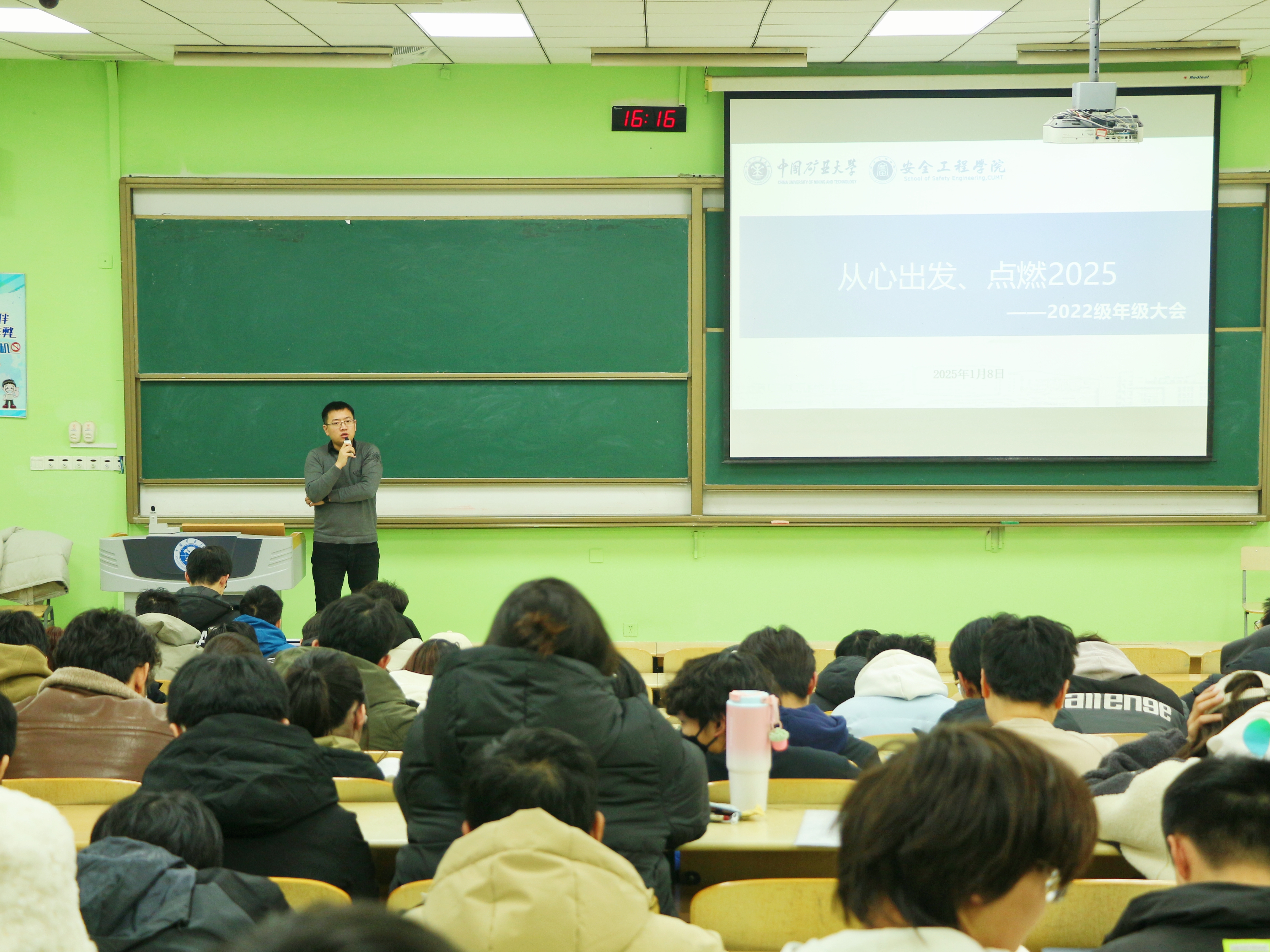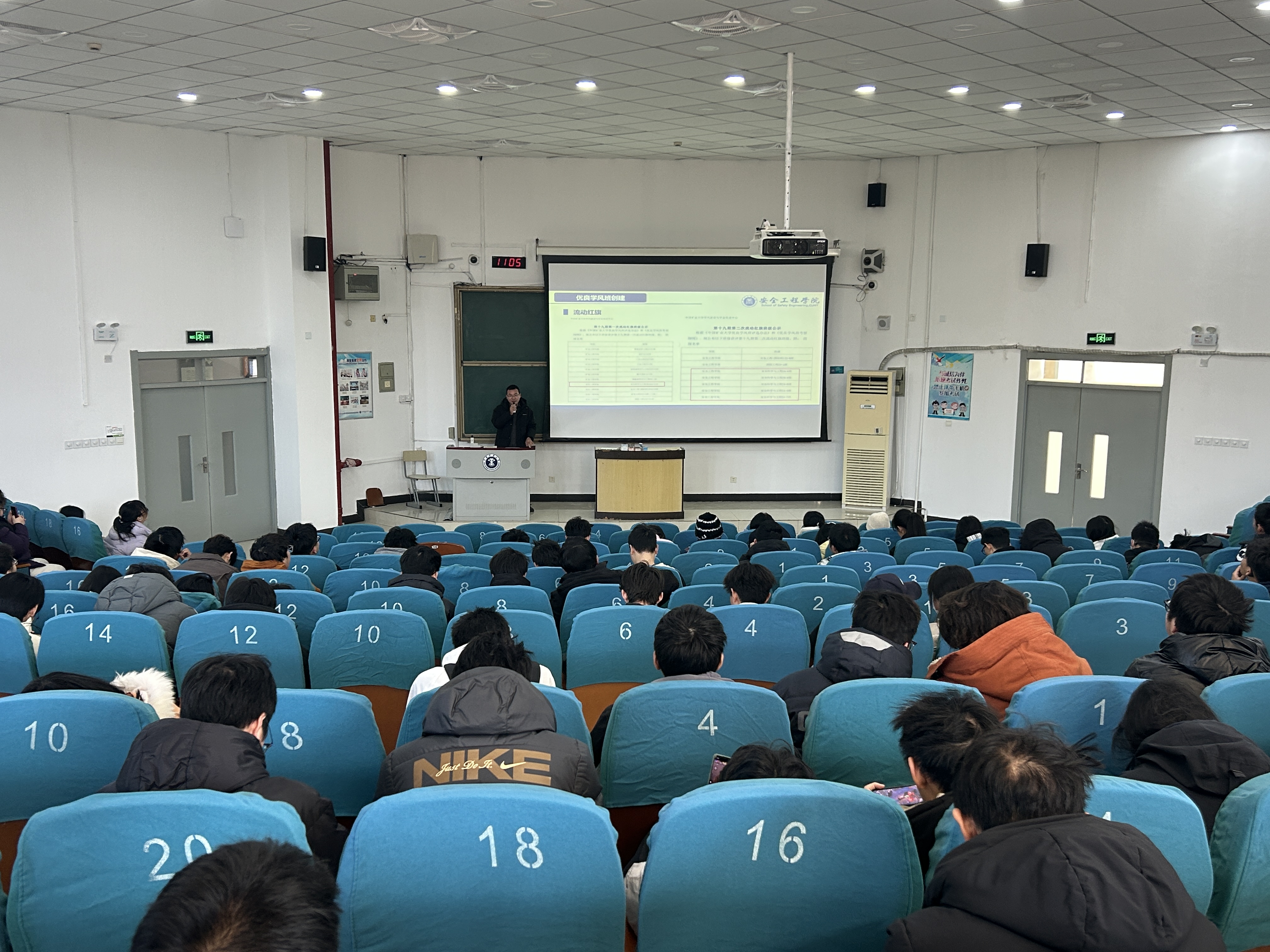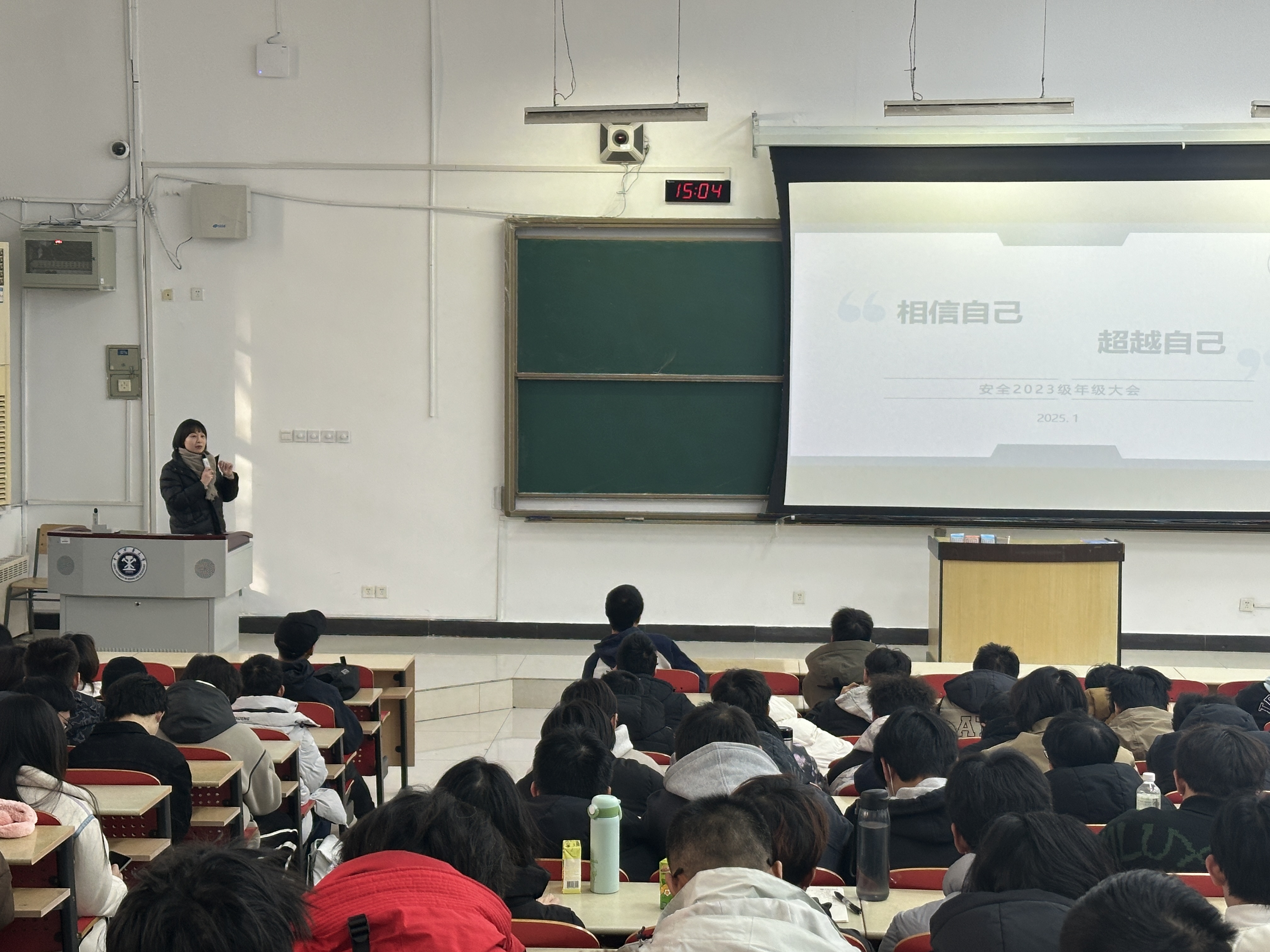 升学就业情况,细致做好生涯指导规划,并以实际案例为参考强调诚信迎考,同时再次说明寒假安排的请假流程,并提供考研就业等的信息来源,为同学们的放假期间的人身安全及未来发展保驾护航。2023级年级辅导员郭佳围绕本学年年级整体学风建设和各班级情况进行总结,指出年级中出现的共性问题和解决办法,并提出下学期的工作目标。对假期前后的安全工作进行统一部署。2024级辅导员胥振围绕年级学业情况、学生手册重点条例、请销假制度、诚信考试教育、寒假假期规划展开细致讲解,鼓励学生认真复习,积极备考,诚信考试,利用寒假做好个人能力提升。