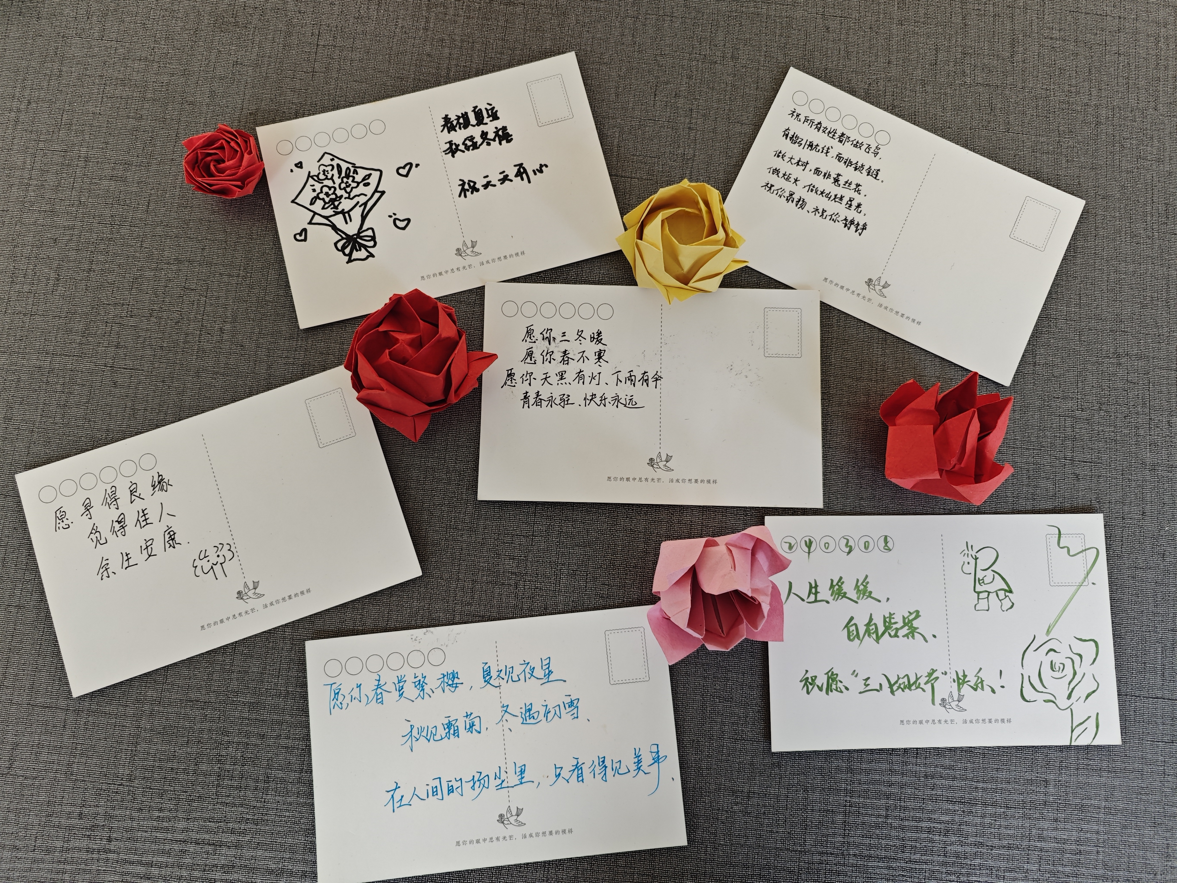 女生。大家将心中的祝福化作美好的语句和一朵朵美丽的纸花,表达了对女性最美好、最衷心的祝愿。