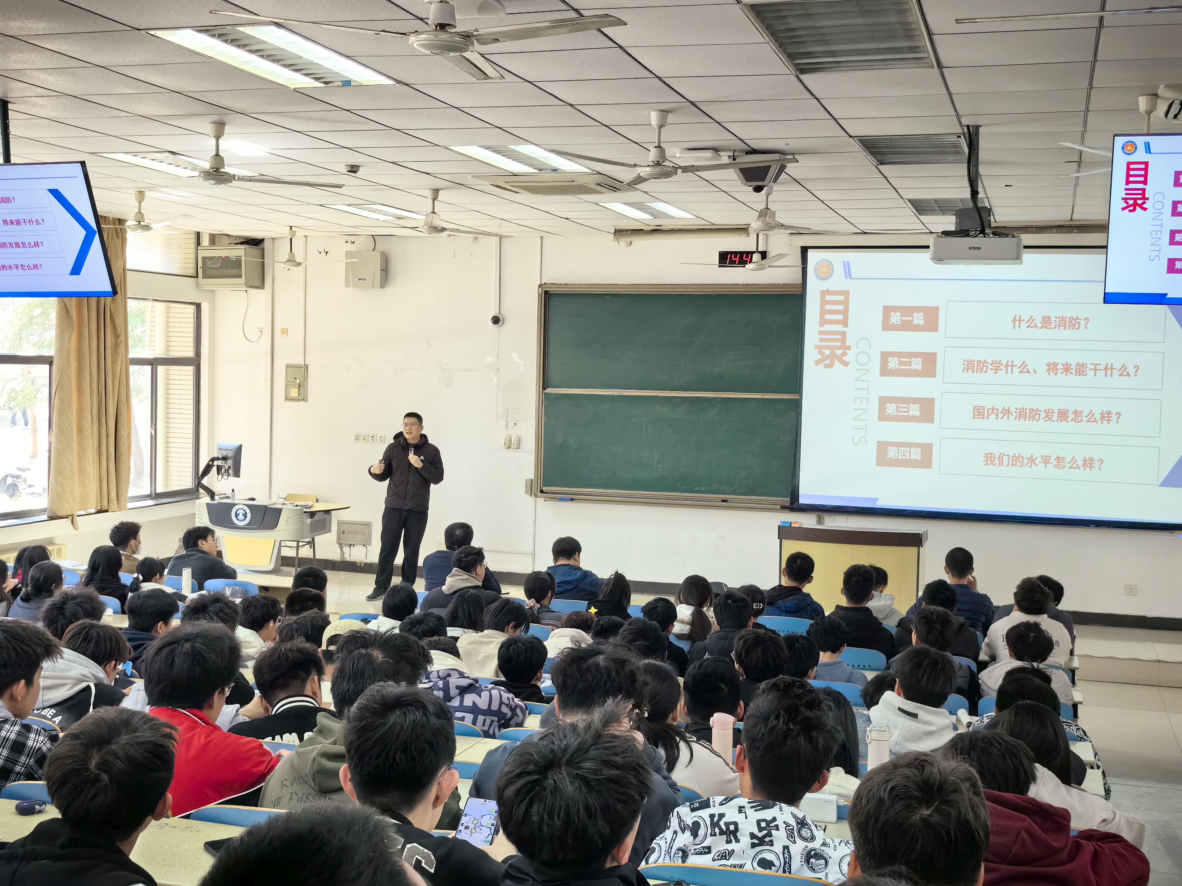 于博1-C103召开2023级专业分流动员大会。安全工程专业教学中心主任时国庆教授、消防工程教学研究中心副主任刘洪永副教授、职业卫生工程专业杨永良教授、江苏省城市火灾防控高校重点实验室主任安伟光教授受邀担任本次活动主讲人,2023级辅导员郭佳老师主持此次动员大会,2023级全体学生参与本次活动。