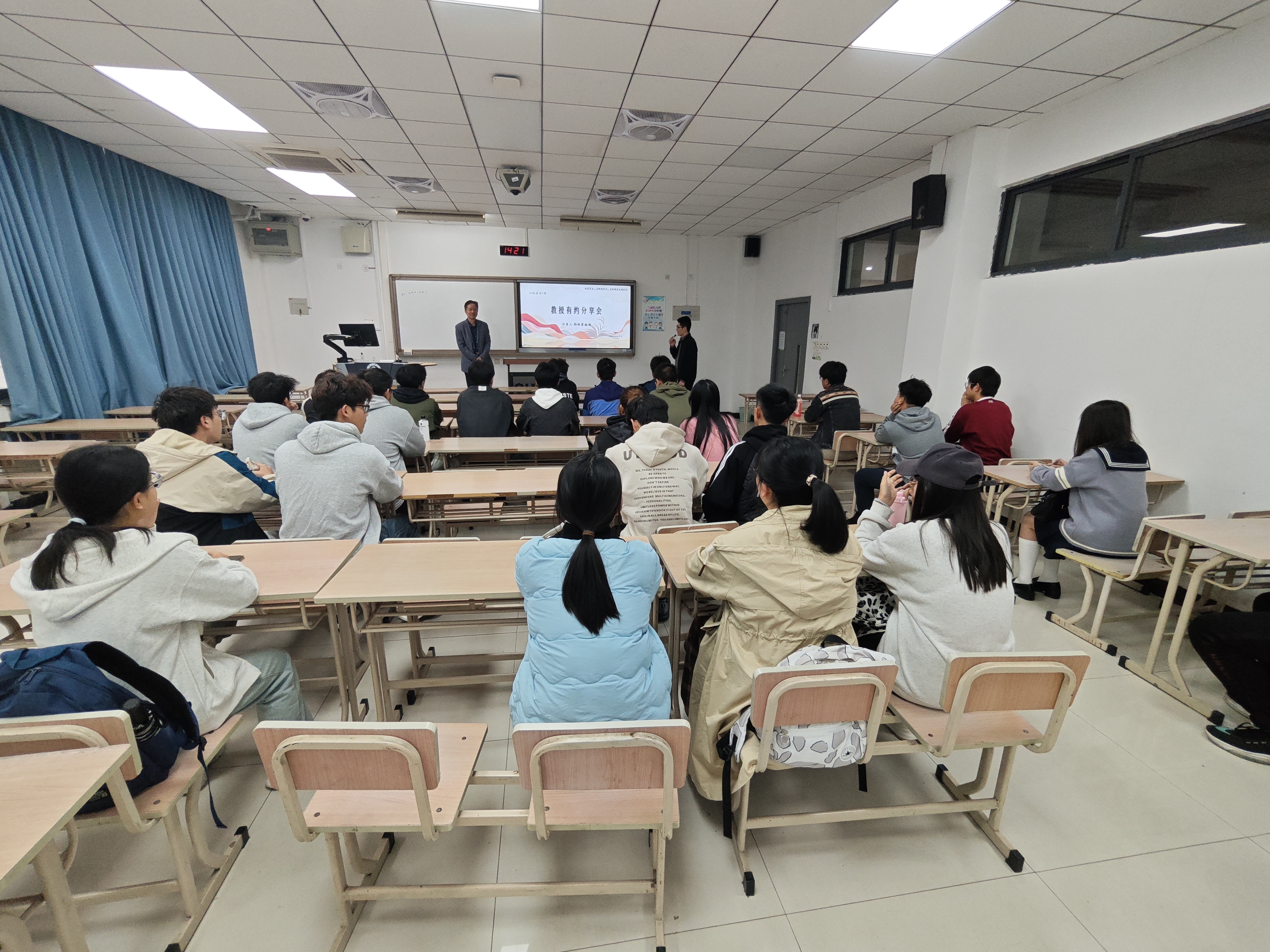于博五B104开展“教授有约”活动。林柏泉教授受邀主讲,行政班主任张祥良老师主持本次活动。2024级1班全体同学参加本次活动。