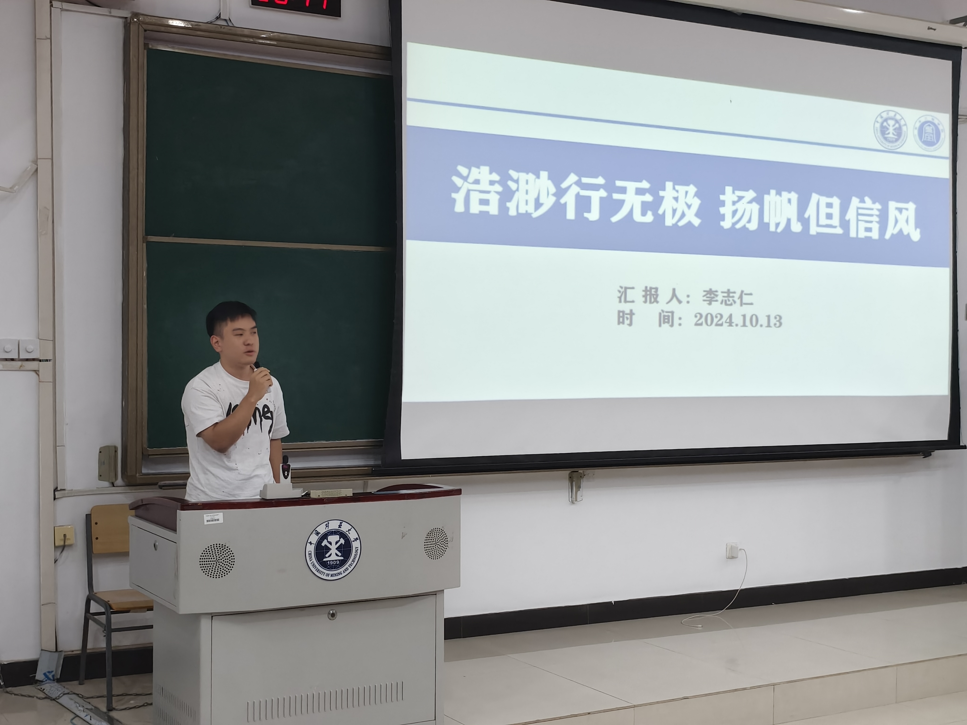 活动伊始,俞嘉濠以“以力胜智,明晰规划”为主题,从学习、竞赛以及学生工作等几个角度讲述了自身保持优秀的心路历程。随后,李孟阳以“八大方针”强调了学习方法的重要性,激励大家志存高远,砥砺前行。之后,杨腾锐以自身实例希望同学们以“不放弃”的精神抓好学习这个主业。然后,李志仁以自身不断失败却不断触底反弹的例子鼓励大家不惧当下的失利。辅导员胥振勉励同学们要坚定理想信念,树立正确的价值观,拥有强健的体魄和扎实的学识,勇于尝试各类活动,不断提升自己的综合素质能力。