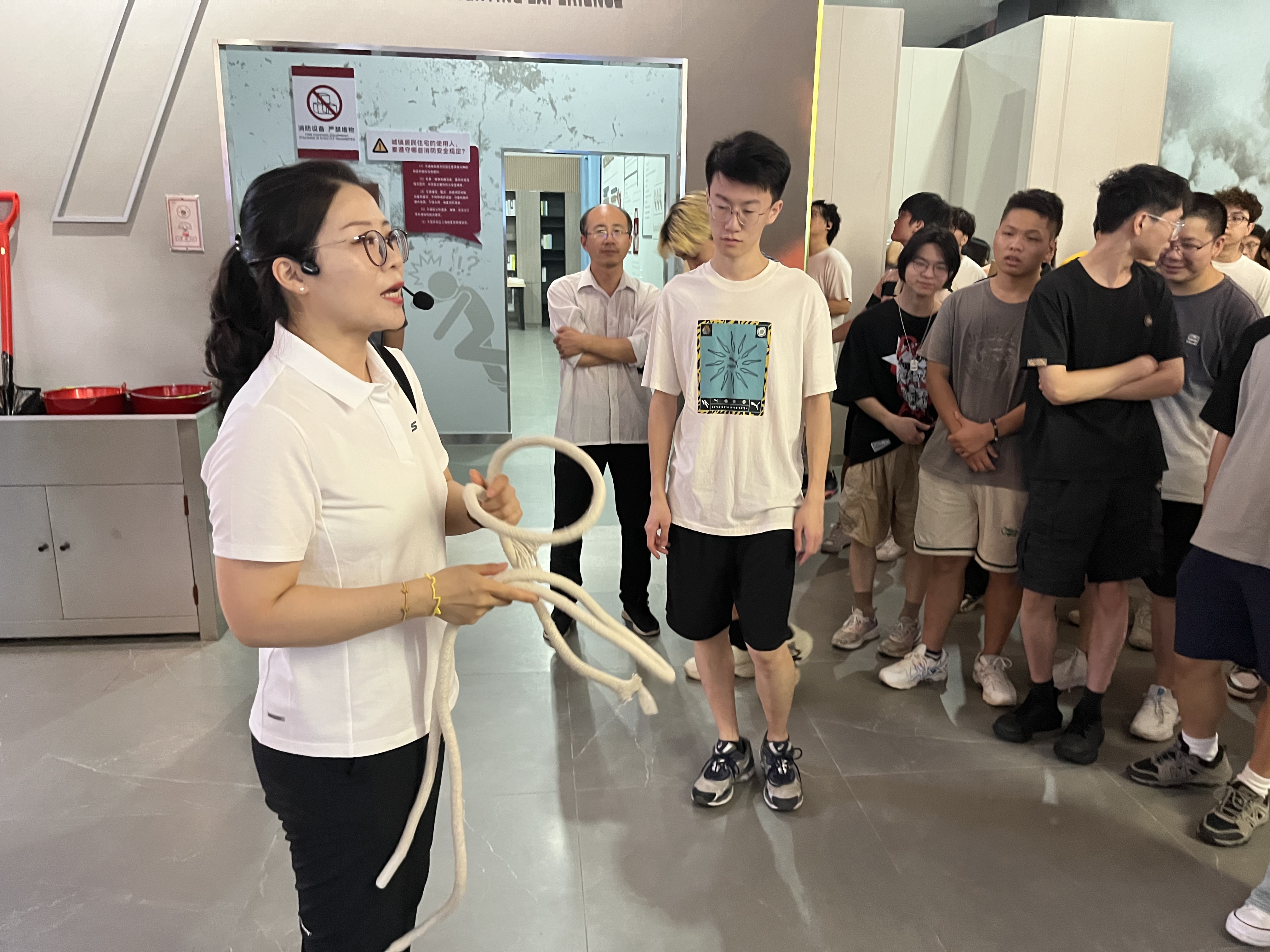 老师向同学们讲述了爆破安全技术以及井下爆破等知识,重点讲述了爆破前的准备工作、各项分级审核制度以及爆破的工序和影响因素。讲解员带同学们参观了安全警示馆,通过各类互动设施帮助实践团成员更好了解各类重大灾害的危害以及相关情景下的自救以及救助操作。随后,在专业工作人员的带领下深入井下实训基地,依次学习了提升、供风、供水、通风系统知识,对井下工作环境、开采器械、任务流程有了更加直观的认识。实践团基于前几日的学习,进行了安全生产六大避险系统的观摩活动,详细学习了井下联络、爆破作业、应急避险的相关措施,并进入地下硐室深入了解了其内部构造、设施安排与自救器的设备使用。观摩结束后,实践团成员们开展了组织研讨,分享了自己的学习过程中的心得体会,对相关知识有了更系统的认识。