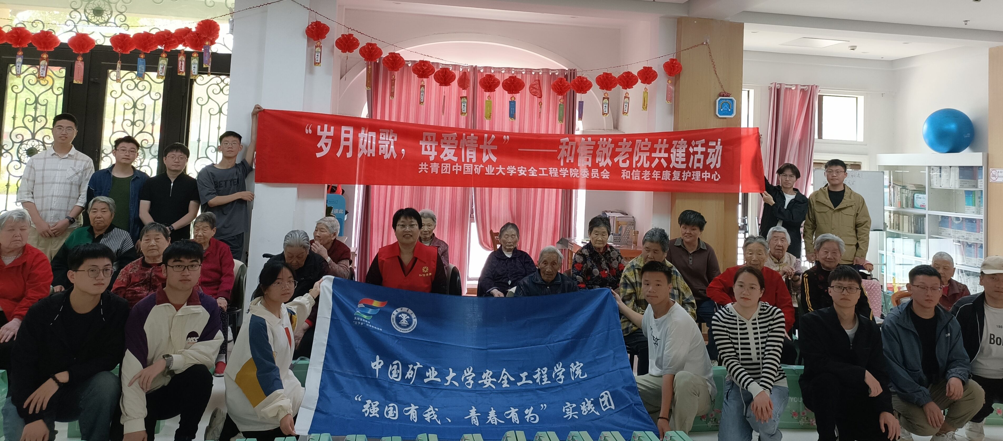 组织“强国有我,青春有为”实践团参加了和信老年康复护理中心的母亲节活动。