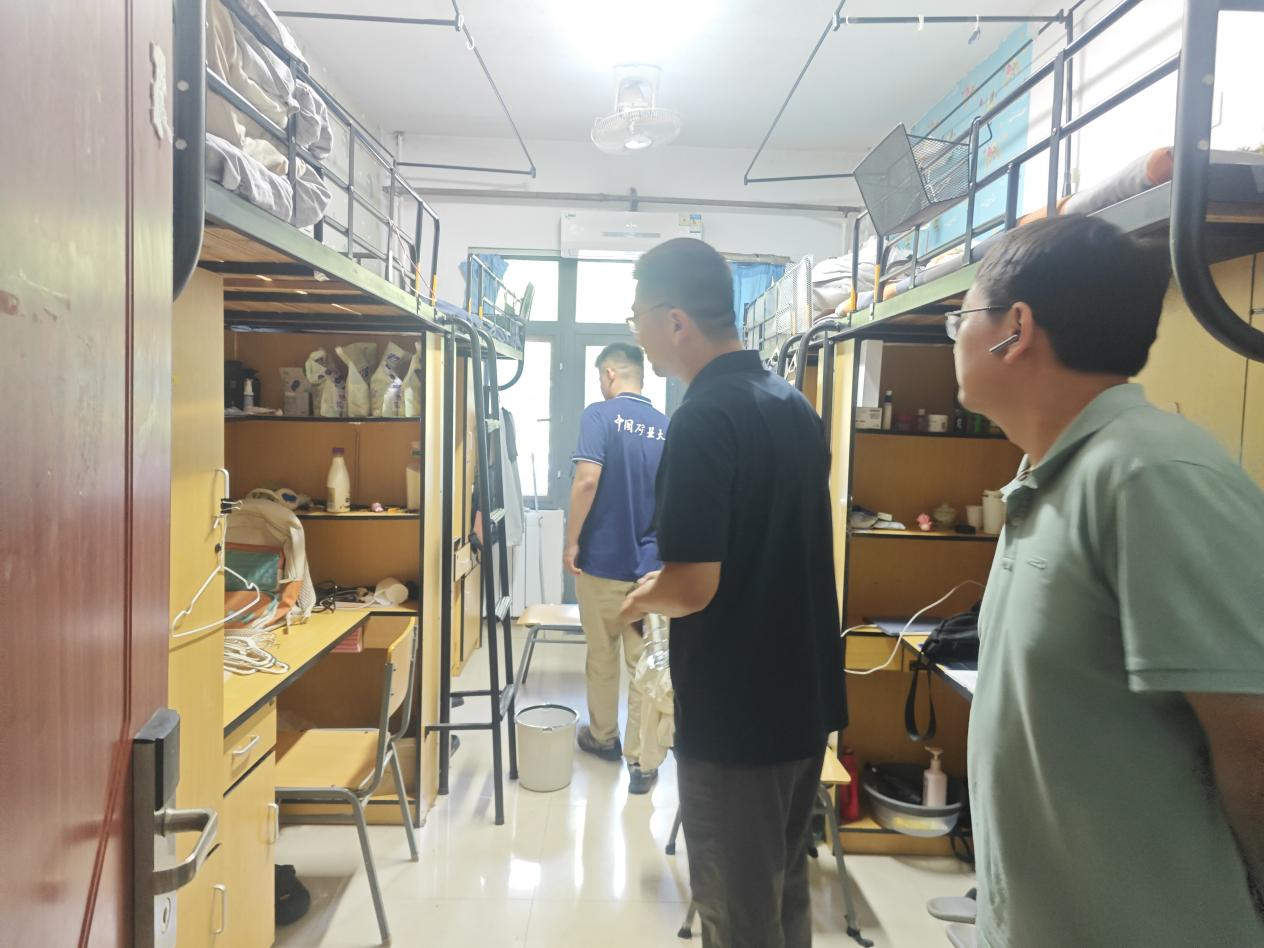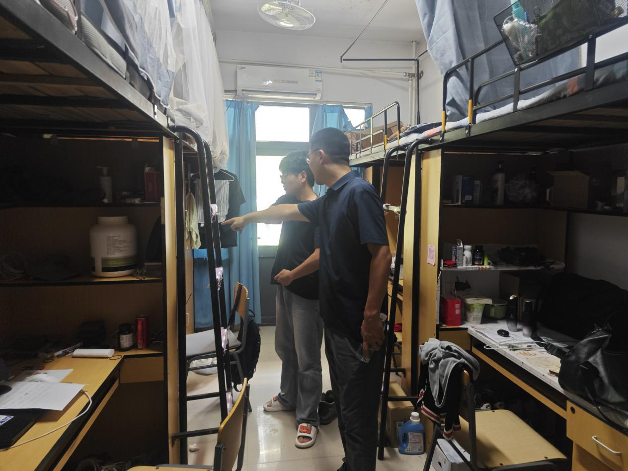 各年专兼职辅导员深入对应年级本科生宿舍与兰苑三号楼研究生宿舍逐一进行检查,重点聚焦水电线路安全、物品堆放是否规范等内容。检查结束后,工作人员在无学生留宿的宿舍门外张贴暑期安全封条;对于申请暑期留校的学生,检查组进行面对面叮嘱,重申天美传媒