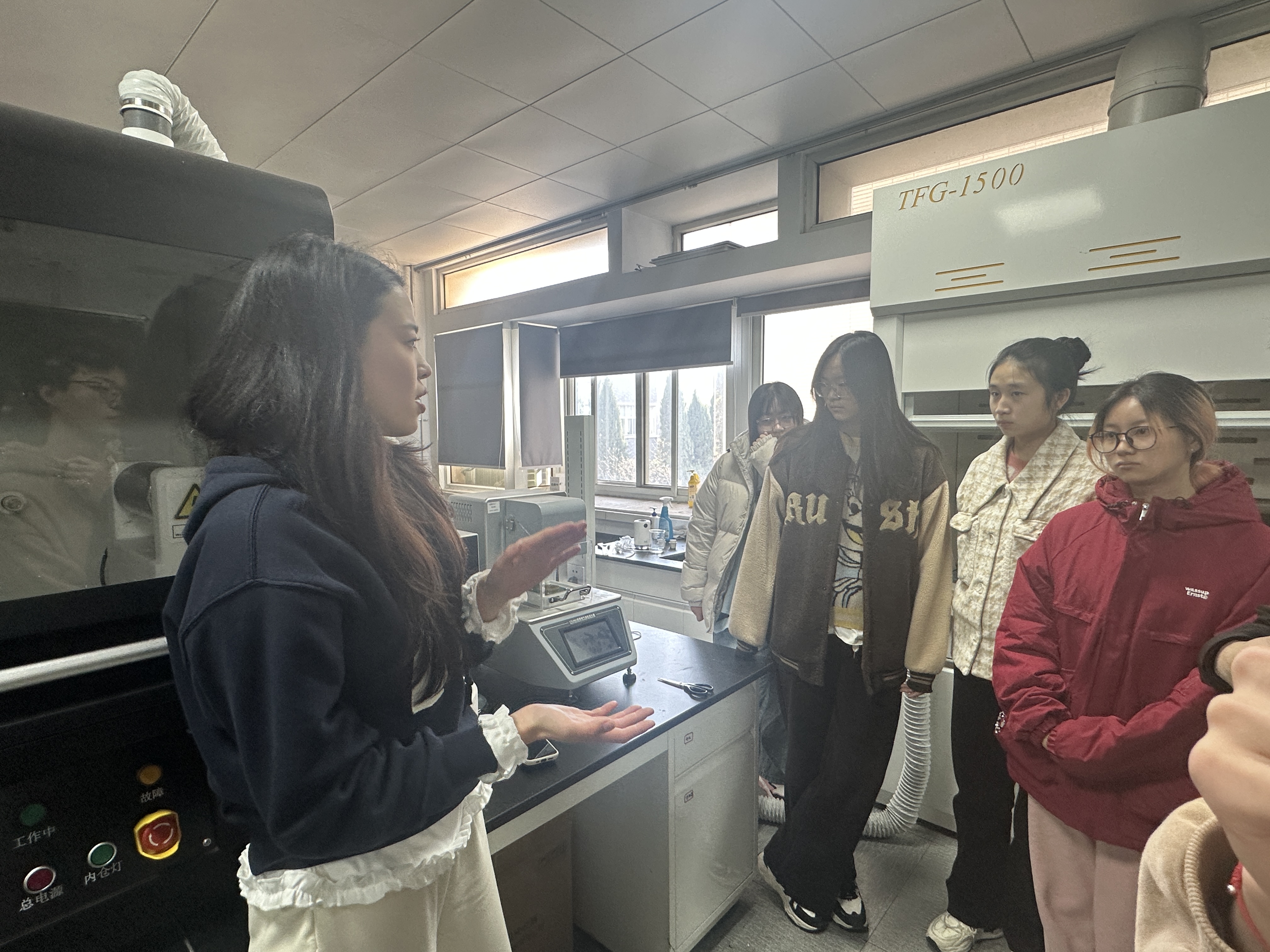 健康卫生研究院该优秀平台的具体建设进行了详细介绍。随后,他以该专业多学科交叉的特点向同学们介绍了优秀的师资团队和人才队伍,并聚焦于组织架构这一方面,向同学们介绍了可视化数值模拟、粉尘精准监测以及呼吸防护技术等前端科研成果。接着,他邀请2022级硕士宋欣译向同学们讲述了自身作为学生在科研方面的经历,她现身说法,鼓励同学们跳出当前专业限制,融合多学科知识进行科研工作。最后,宋欣译同学带领现场同学于健康卫生研究院实验室进行参观,并为大家简单讲解了各仪器的用处,还耐心解答了大家提出的各类疑问。
