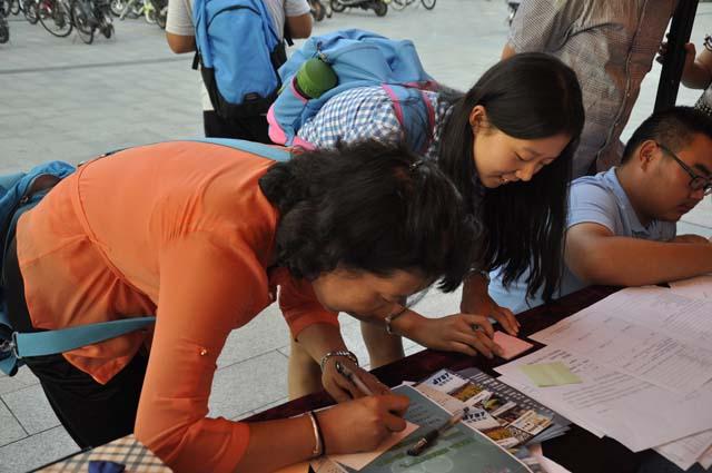 团委学生会便早早搭好15级新生迎新点——“安全驿站”,还在旁边设立了别具一格的心愿墙,让初来乍到的新生写下自己对今后的期盼和心愿。