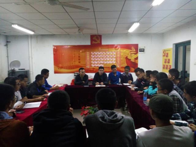 晚上十点,会议正式开始。各班上交了近期的考勤表,其中包括早操、上课出勤率以及请假条存根。随后何老师强调:学习应当是每个大学生首要的任务,要充分利用好晚自习的时间,相互督促,共同进步,营造一个浓厚的学习环境。同时,他对同学们近期高涨的学习热情给予肯定,督促各班班委重点关注班级内每一个同学的学习和生活状态,并且要不定期汇报情况。除此之外,何老师就早操出勤问题批评各班负责人,提出早操零缺勤方案,提醒大家学习之余,重视自身健康问题,增强体质,培养全方面的优秀大学生。接着他提醒各班积极准备“爱在身边,温馨家园”主题班会活动,并借此机会团结班级,构建优秀团支部,构建优秀的班集体。最后何老师指出,作为当代的大学生,应该严于律己、严于守诚、严于修身,谋事要实,求学要实,做人要实,争取做一个会思考、有理想、敢担当的有为青年。