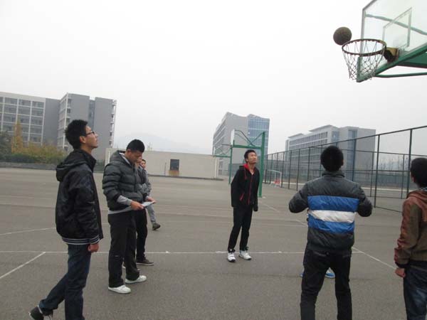 此次活动共有四人五足、跳绳、乒乓球、投篮四个项目。上午9时,活动正式开始。首先进行的是 “四人五足”环节。在裁判的一声令下,同学们喊着整齐的口号,迈着整齐的步伐向终点挺进。为了缩短比赛用时给自己所在宿舍赢得荣誉,同学们纷纷加快了步伐,口号声也越喊越响亮。虽然当时还下着毛毛雨,但是这丝毫不影响同学们参与活动的热情。走完了50米,早已等在终点的同学便紧张地投入到第二个项目――跳绳中去。紧接着,依次进行的是乒乓球和投篮项目。在活动过程中,同学们密切配合,奋勇争先。值得一提的是,在投篮环节中,来自12-2班的王丹同学表现出色。干净利索的投球方式、百分百的命中率,王丹在投篮过程中的优异表现向人们展示了女篮们的飒爽英姿和蓬勃朝气。活动持续了1个多小时。上午10点左右,活动圆满结束。