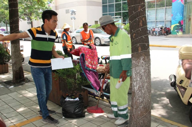 星火之队——“徐州美”社会实践团在精英广场就生活垃圾的分类问题展开问卷调查。