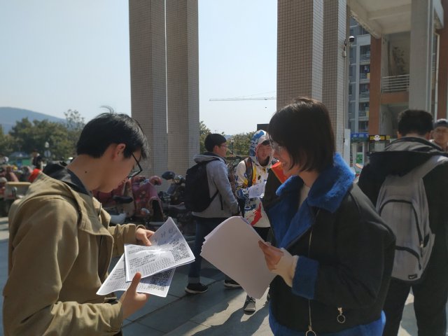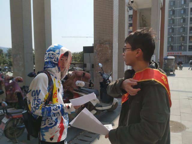 中午12时准,安全志愿者们来到三食堂门口开始宣传。据悉,想要参与此次活动的同学须先加入一个QQ群,在群里同学们需要选择自己喜爱的植物种类及花盆颜色,之后相关工作人员会将种子及种植用具分发给各组。各组成员将种子、花盆及种植用具带回并悉心照料。待到4月21日,由相关工作人员组织绿植生长较好的小组同学到公教区,将绿植放置于讲桌、窗台等地,为教学楼增添绿色,美化环境。志愿者们井然有序地开展活动,积极宣传本次活动。尽管正值中午吃饭的时间,但志愿者们毫不在意。他们忍受着饥饿,一遍又一遍耐心地向路过的同学宣传活动的内容,以求更多人可以了解并参加到这个活动中来。从人来人往的高峰期一直到所有人吃完离去,志愿者们一直面带微笑,尽职尽责。